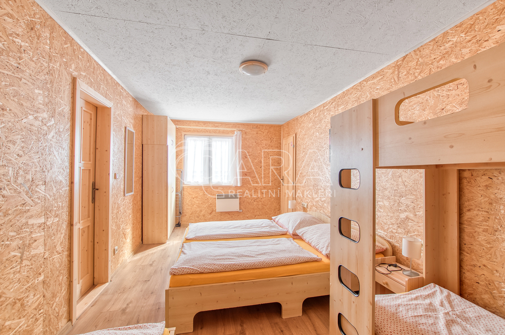 Součástí areálu je šest chatek typu Gizela z roku 1985, které v letech 2021 až 2023 prošly důkladnou rekonstrukcí. Každá má vlastní vchod, terasu, koupelnu a vytápění. Celková ubytovací kapacita v chatkách je 30 osob. Nechybí ani samostatný zděný apartmán 2+kk, kompletně zrekonstruovaný v roce 2024, o ploše 47,6 m² s vlastní terasou u potoka.