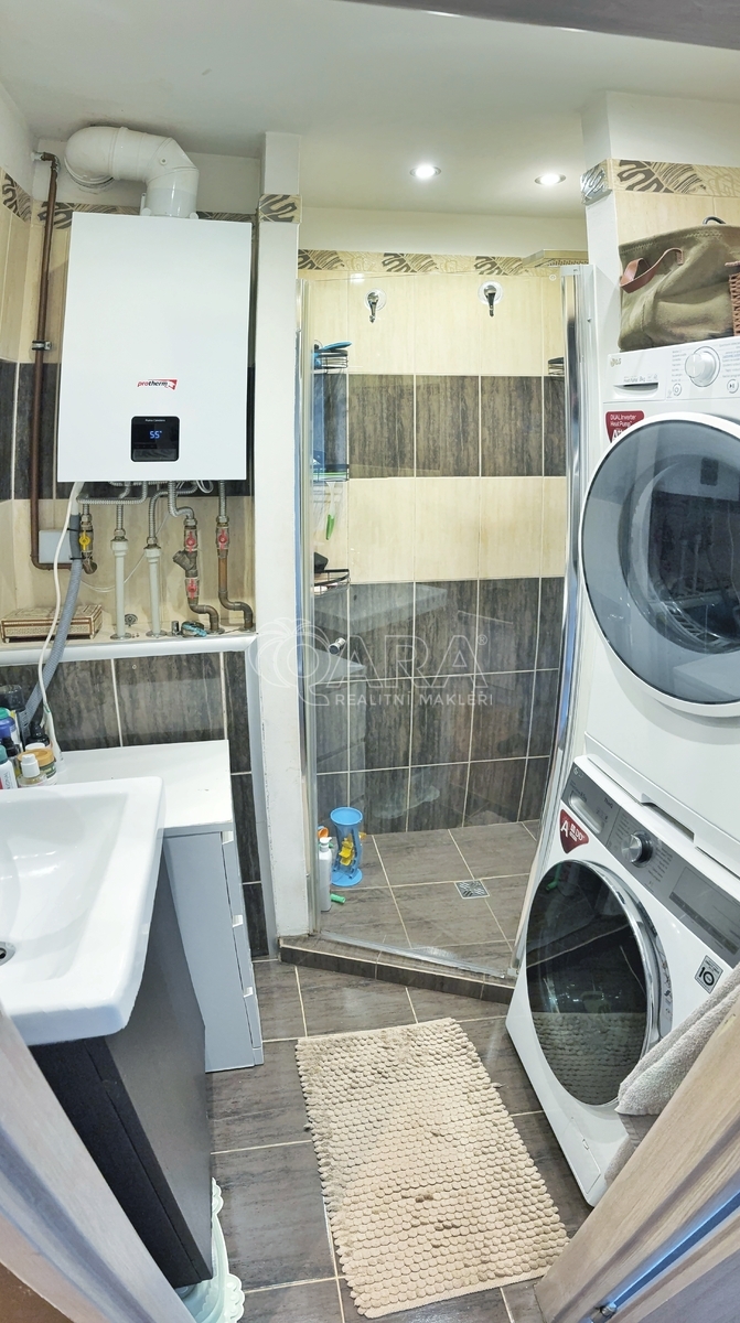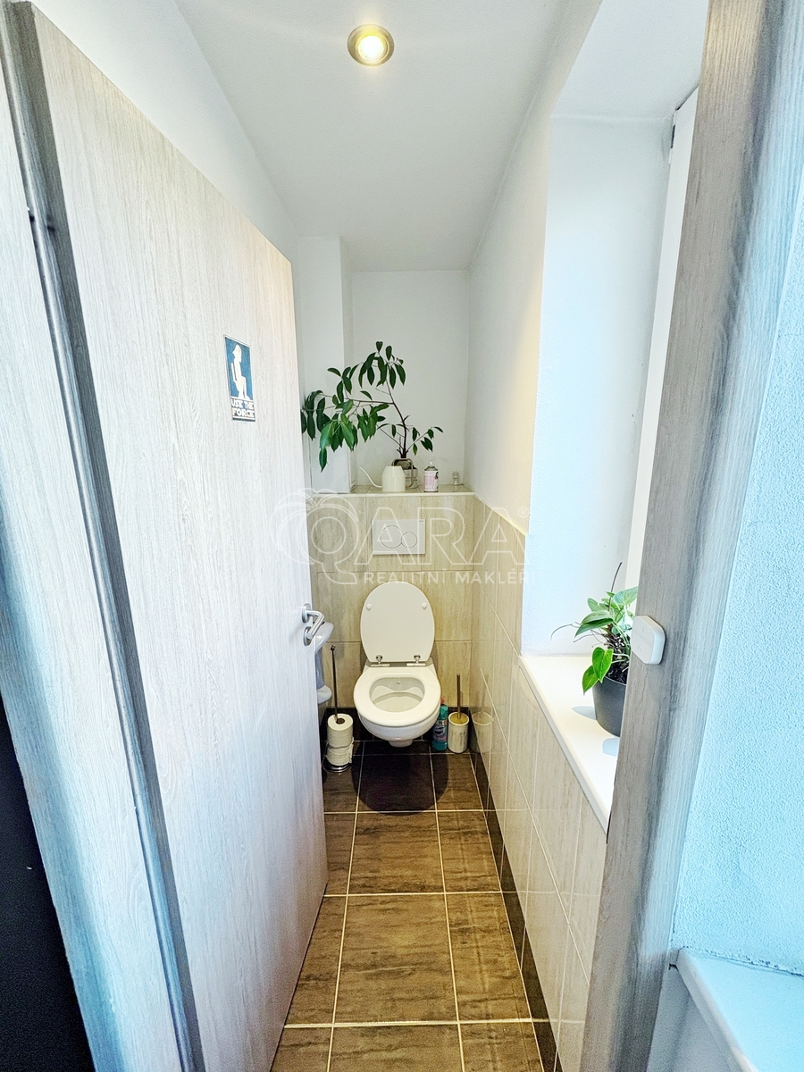 Koupelna a WC: Koupelna disponuje sprchovým koutem a praktickým prostorem pro pračku i sušičku. Toaleta je oddělená.