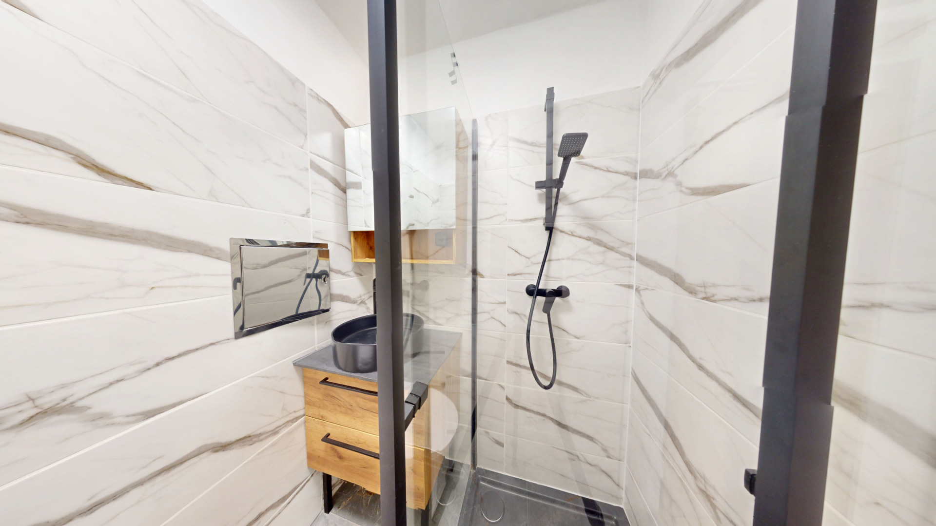Jednotka prošla částečnou rekonstrukcí. V celém bytě je položena plovoucí podlaha. Koupelna byla zrekonstruována velmi zdařile a nabízí sprchový kout, umyvadlovou skříňku s umyvadlem a toaletu. Přípojka na pračku je připravena v kuchyni.