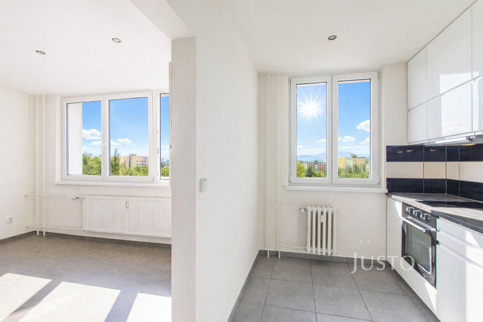 Předmětem prodeje je bytová jednotka o dispozici 2+1 nacházející se na ulici Novodvorská ve Frýdku-Místku. Velice světlý byt, který využil svou výměru 44 m² na 100 %, protože se lehce změnila dispozice jeho původních místností. Co je obrovskou výhodou této nabídky je až extrémně nízká platba do fondu oprav (354 Kč), což činí z tohoto bytu naprosto ideální investiční příležitost. Kuchyňská linka v bílém lesku je vybavena vestavnou troubou, volně stojící lednicí s mrazákem a sklokeramickou deskou. Koupelna se oproti původní variantě bytu trochu zvětšila, čímž se do ní prostorově vměstnal sprchový kout, umyvadlo se zrcadlem, topný žebřík, závěsné WC a také prostor pro pračku. Obývací pokoj je čtvercového tvaru a díky třem oknům je nádherně prosvětlený. Punc tomu všemu dodává výhled na Lysou horu, který si zamilujete. Poslední místností v bytě je obdelníková ložnice. V předsíni je místo k vytvoření vestavné skříně pro potřeby úložného prostoru. Byt má nové vstupní dveře, nové žaluzie, je čerstvě vymalovaný a důkladně vyčištěný.