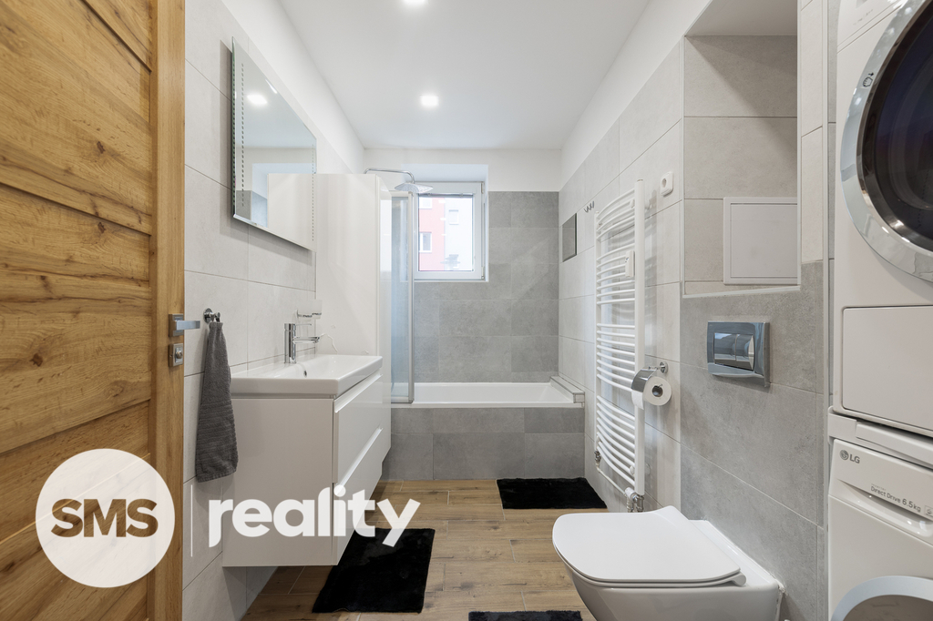 Interiér je laděný do elegantního a nadčasového stylu bílá / dub – působí čistě, útulně a moderně, a zároveň se snadno doladí jakýmkoli nábytkem a doplňky. Byt má příjemnou atmosféru, kde se budete cítit doma hned po příchodu.