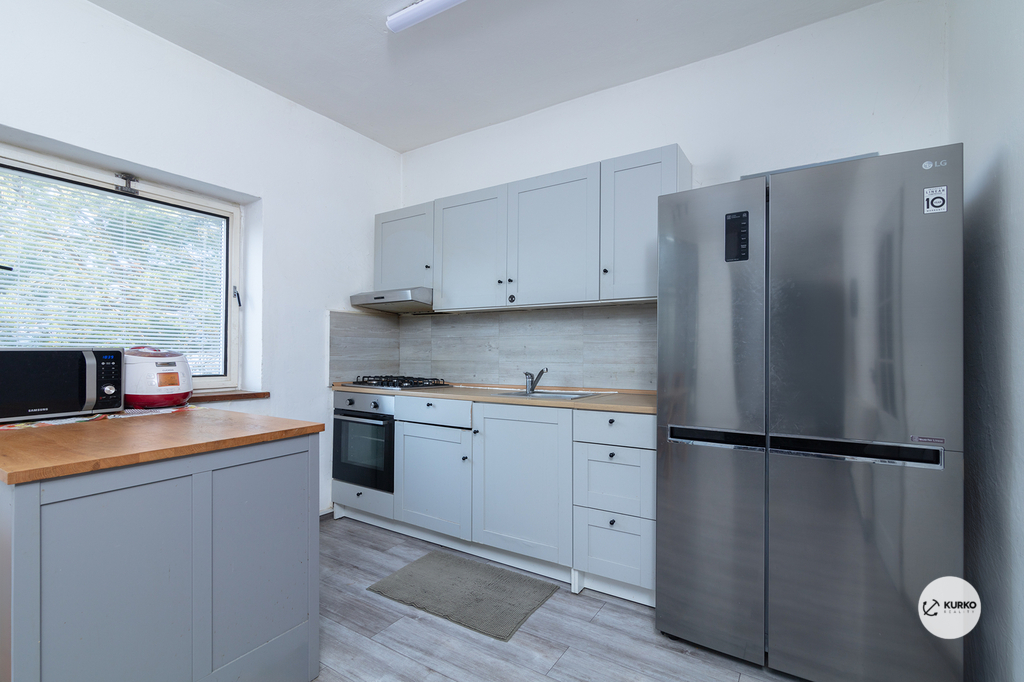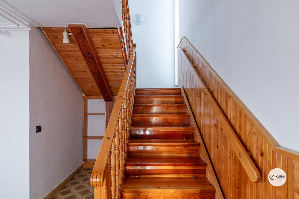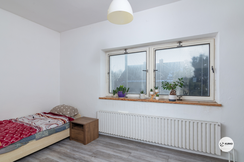 V patře se nachází druhá bytová jednotka, která disponuje kuchyní, prostorným obývacím pokojem, třemi samostatnými pokoji a koupelnou s WC. Tento prostor je ideální pro rodinné bydlení s dostatkem prostoru a pohodlí. Součástí domu je také prostorná garáž se samostatným vstupem, která může sloužit nejen k parkování, ale také jako skladovací prostor.