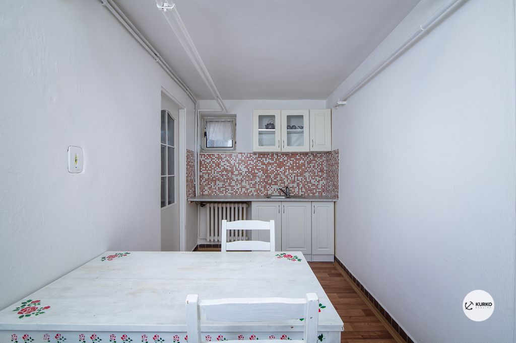 Suterén domu nabízí plnohodnotný prostor, který je vhodný jako samostatná bytová jednotka, nebo může sloužit k podnikání, například jako kancelář, kosmetický salon, ordinace či jiné služby. Nachází se zde chodba, kuchyň, obytný pokoj, menší pokoj a koupelna s WC. Hala v přízemí propojuje oba obytné prostory a zároveň umožňuje přímý vstup na udržovanou zahradu, což zajišťuje komfort i soukromí.