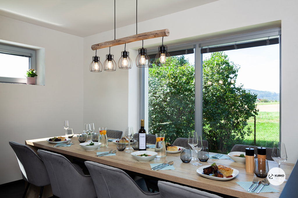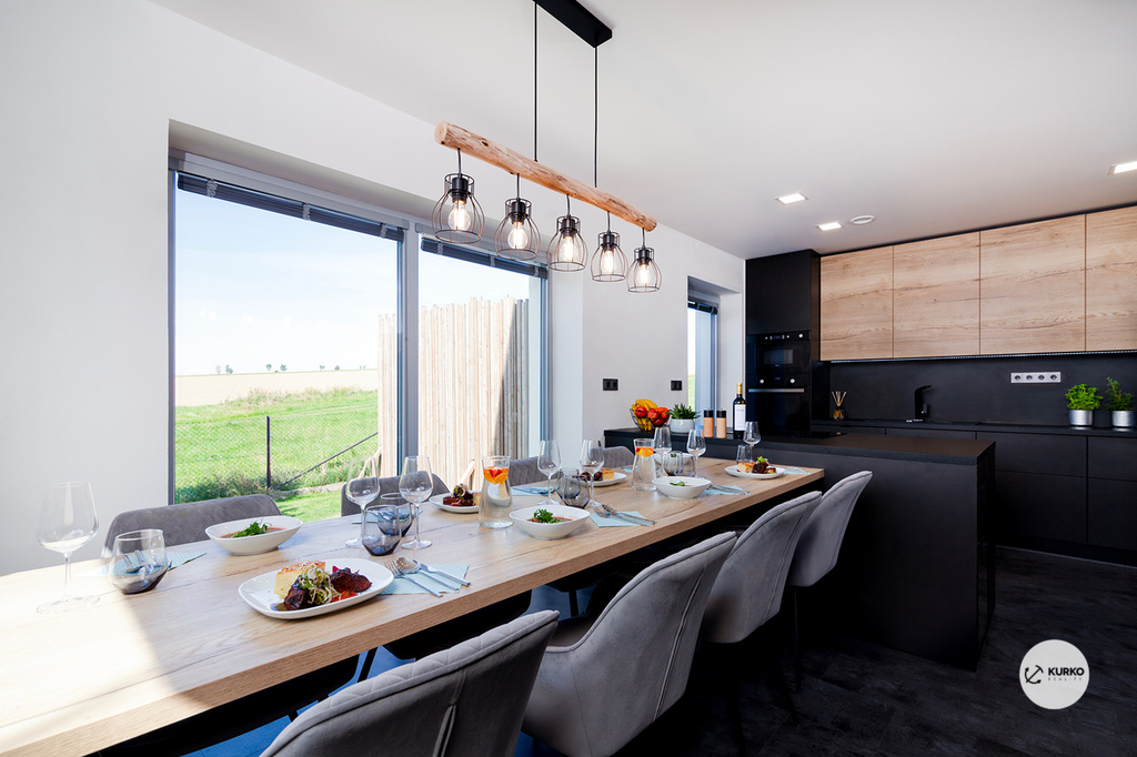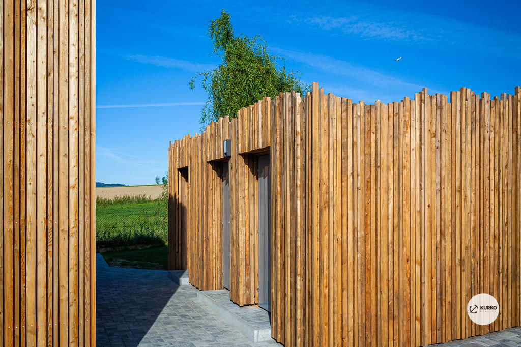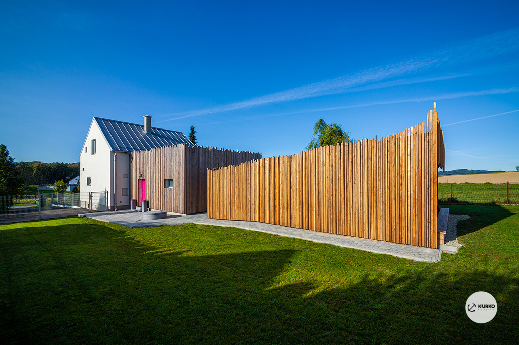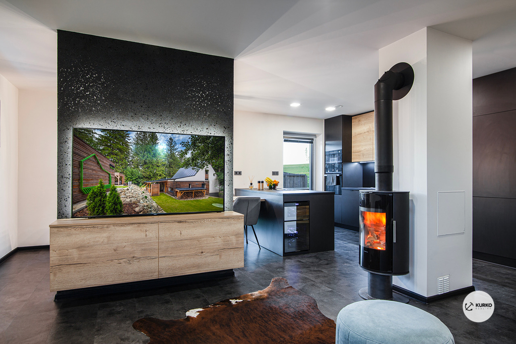 Z kuchyně a přízemních ložnic je přímý vstup na velkou terasu, kde je velký stůl, gril a zejména luxusní vířivka, plně vybavené letní kino s kvalitním plátnem, ozvučením k poslechu oblíbené hudby a sledování filmů. Pro ještě lepší zážitek jsou připraveny pohodlné sedačky, stroj na výrobu popcornu a lednice.