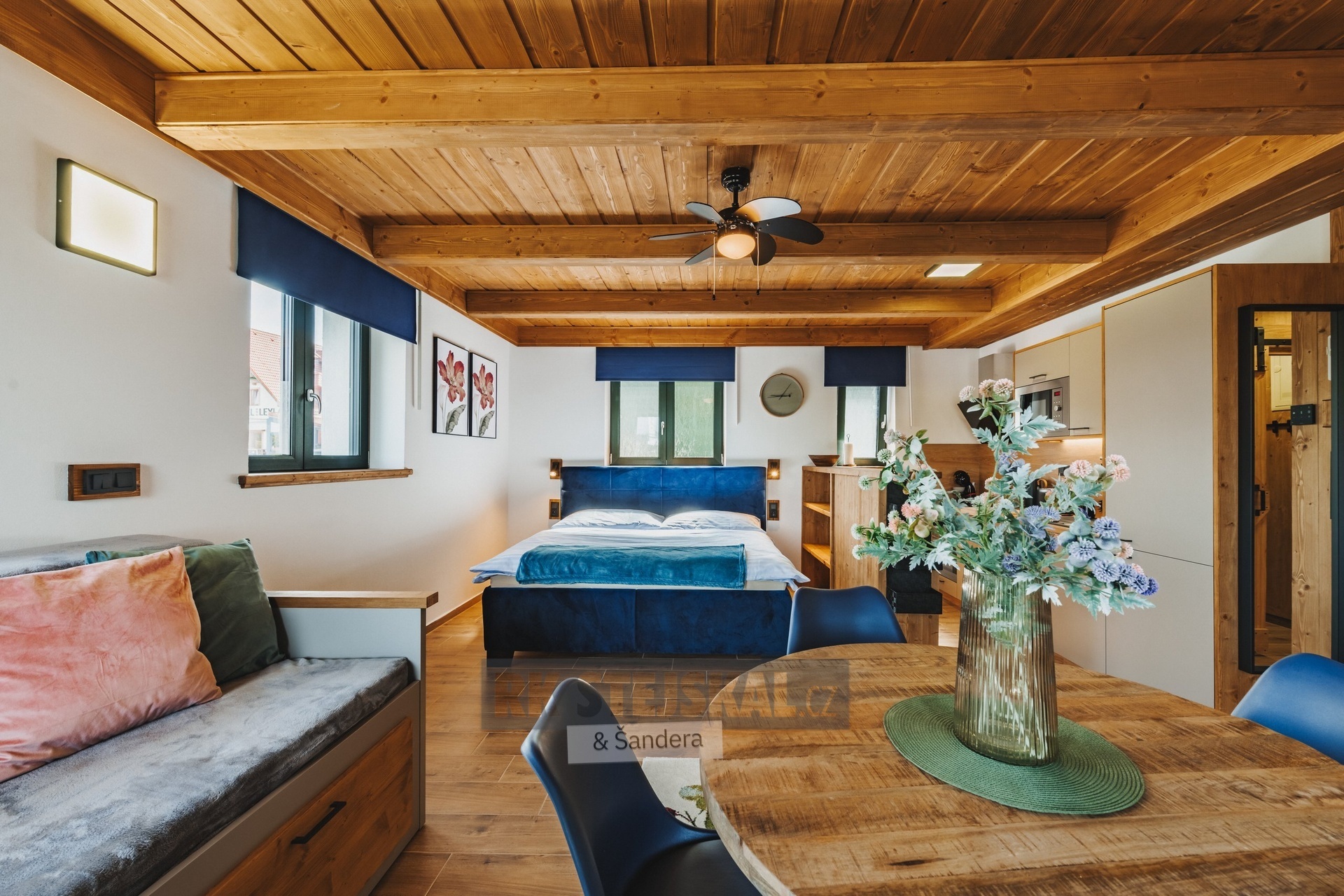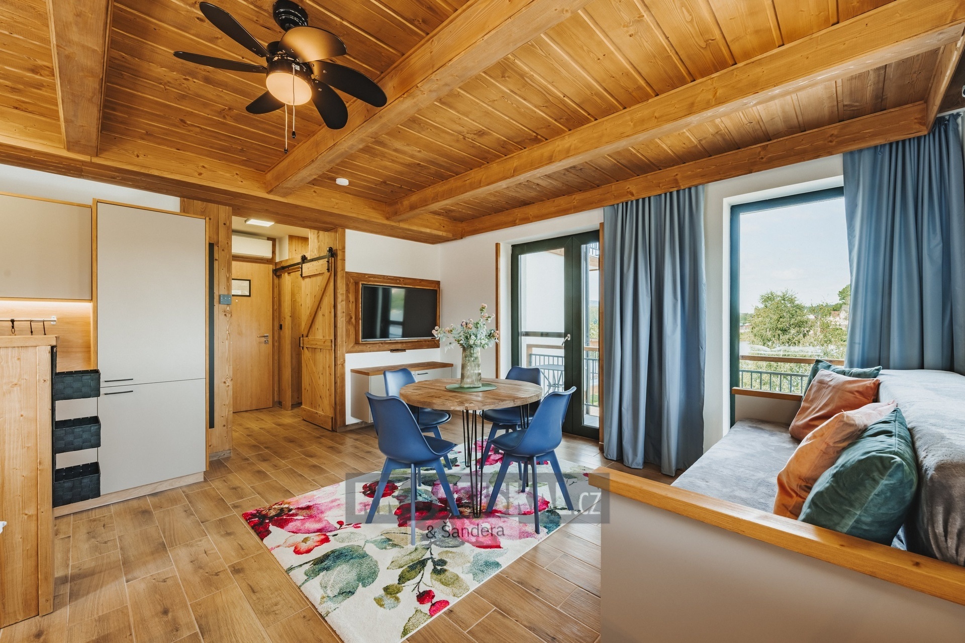 Nabízíme Vám dlouhodobý pronájem exkluzivního apartmánu o dispozici 1+kk (42 m2) přímo u vody ve Frymburku, s úžasným výhledem na Lipno. Apartmán je plně vybavený a připravený k okamžitému nastěhování.