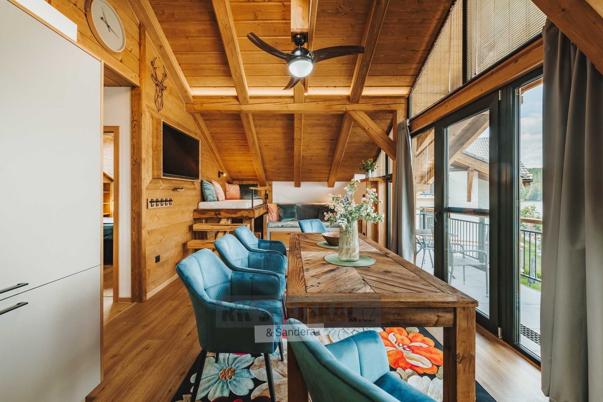 Nabízíme Vám dlouhodobý pronájem exkluzivního apartmánu o dispozici 2+kk (64 m2) přímo u vody ve Frymburku, s úžasným výhledem na Lipno. Apartmán je plně vybavený a připravený k okamžitému nastěhování.