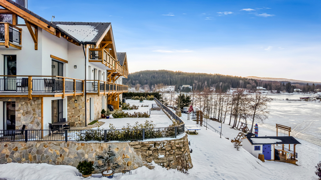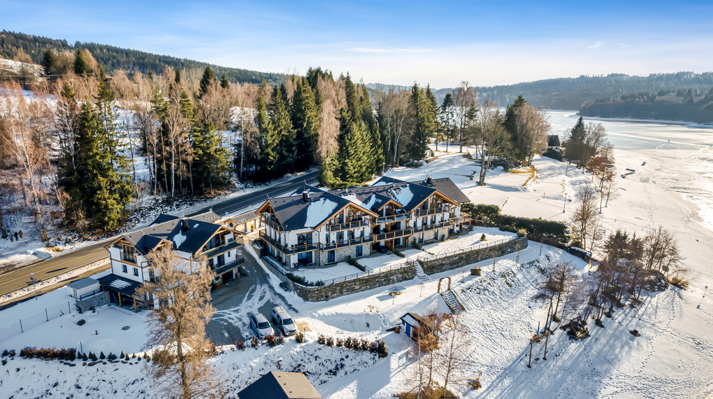 Představuji Vám apartmán 3+kk o ploše 73 m² v prémiové rezidenci přímo u pláže Lipenské přehrady ve Frymburku.
