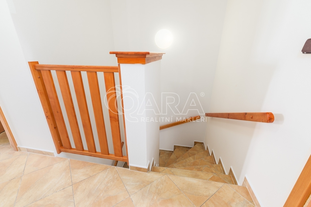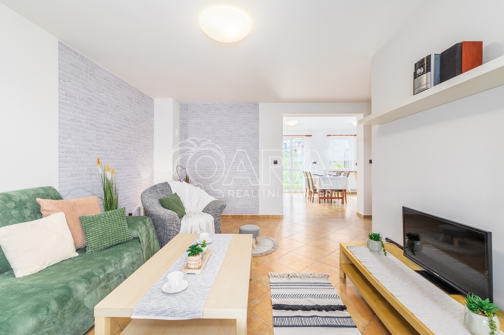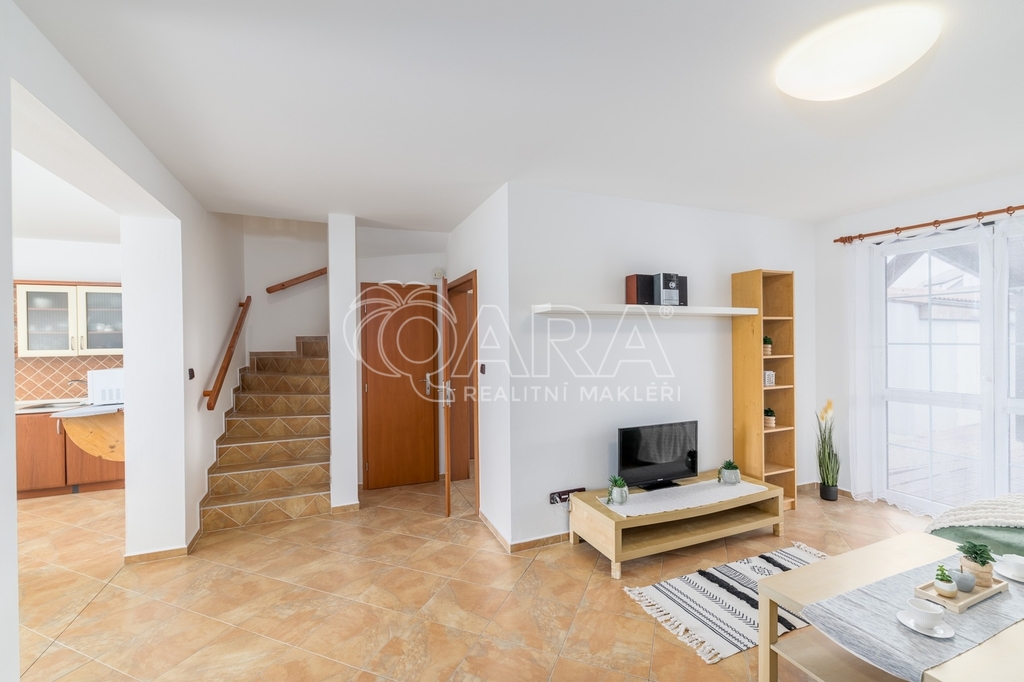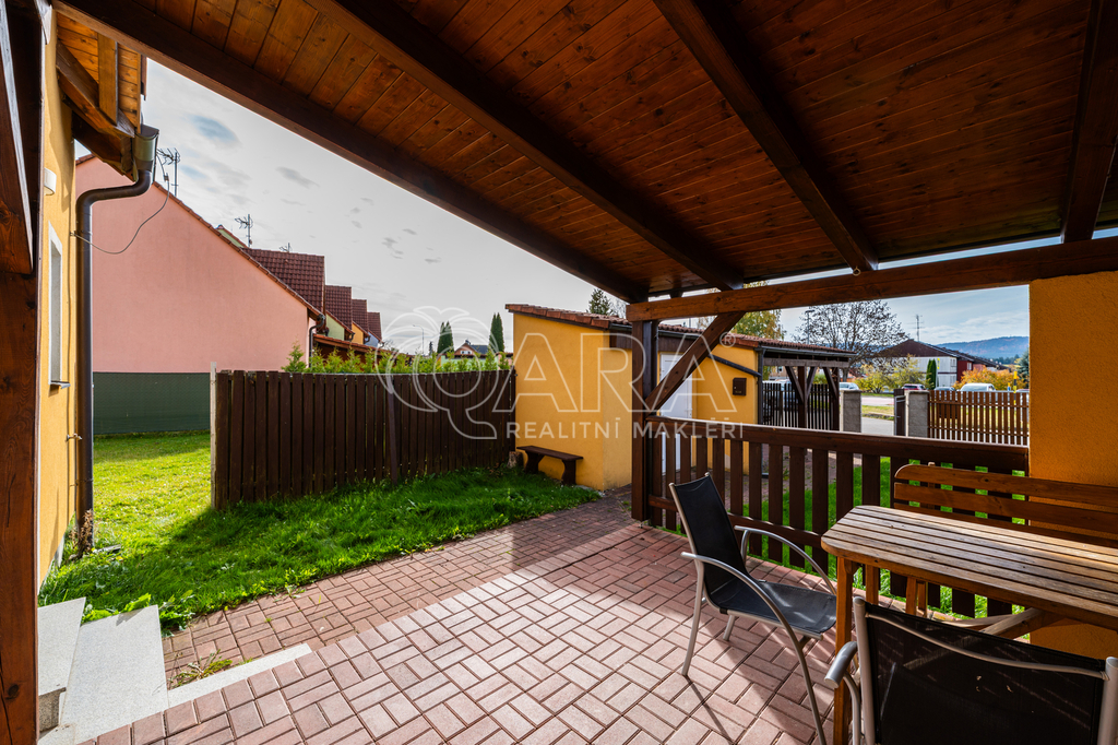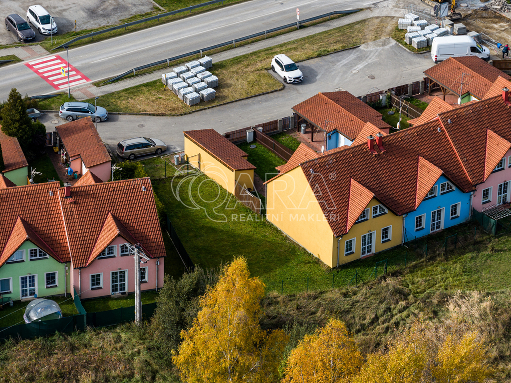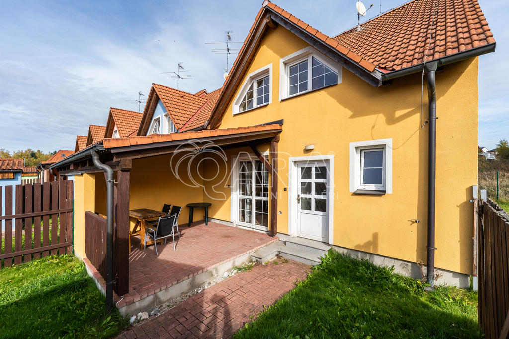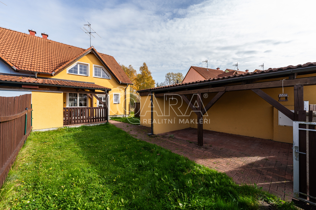 Dům jako takový poskytuje užitnou plochu o necelých 120 m² a je součástí řadového rodinného bloku. Nabízí pět obytných pokojů, dvě koupelny, prostorný obývací pokoj s kuchyní a jídelnou, technické komory a spíž. Vzdušný obývací pokoj doplňuje přímý vstup na zastřešenou terasu o výměře 14,5 m², ideální pro posezení a grilování. Z kuchyně je vstup přímo na zahradu náležící k domu o příjemné výměře 370 m², která poskytuje ideální klidné prostředí pro relaxaci nebo místo, kde se mohou děti bezpečně vydovádět. K praktičnosti domu přispívá také vlastní přístřešek na auto a zděný zahradní domek či skladovací místnost vhodná pro uložení sportovního vybavení nebo zahradní techniky. V případě potřeby dalších parkovacích míst je možné po domluvě dokoupit volná stání před domem.