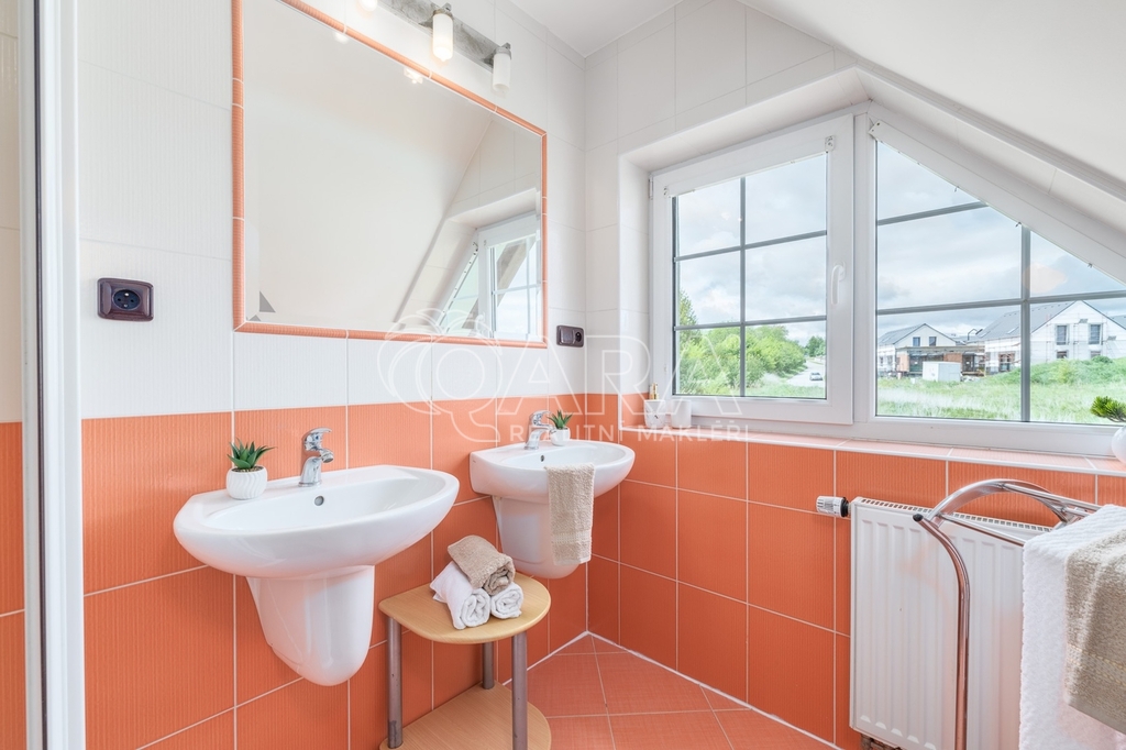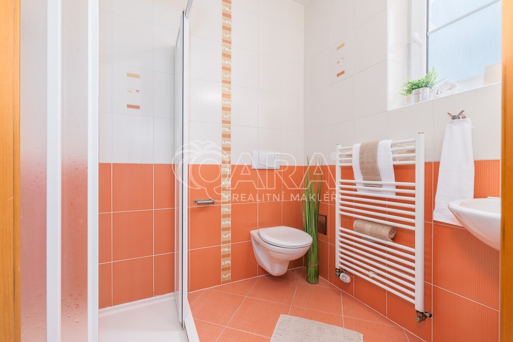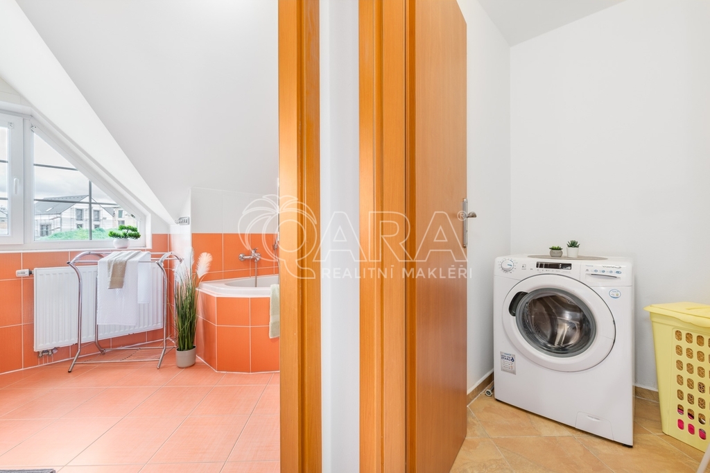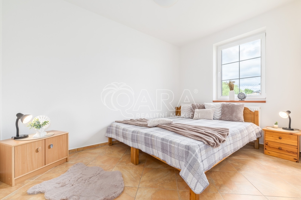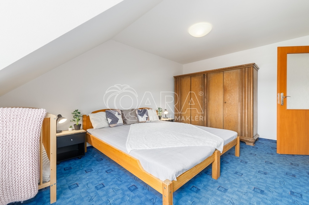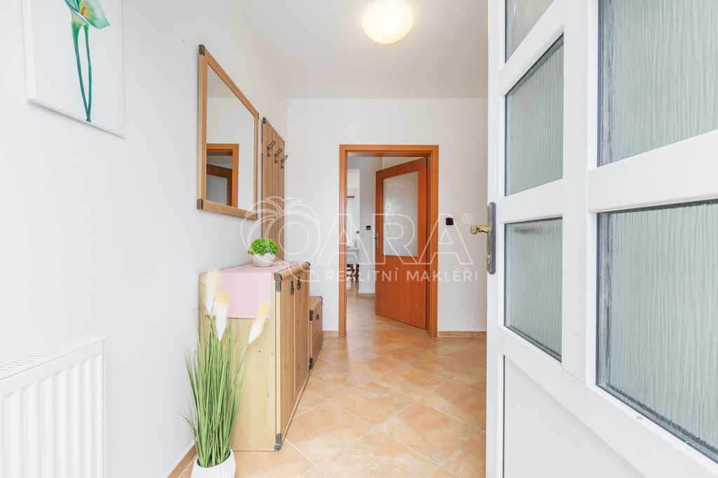 Dům jako takový poskytuje užitnou plochu o necelých 120 m² a je součástí řadového rodinného bloku. Nabízí pět obytných pokojů, dvě koupelny, prostorný obývací pokoj s kuchyní a jídelnou, technické komory a spíž. Vzdušný obývací pokoj doplňuje přímý vstup na zastřešenou terasu o výměře 14,5 m², ideální pro posezení a grilování. Z kuchyně je vstup přímo na zahradu náležící k domu o příjemné výměře 370 m², která poskytuje ideální klidné prostředí pro relaxaci nebo místo, kde se mohou děti bezpečně vydovádět. K praktičnosti domu přispívá také vlastní přístřešek na auto a zděný zahradní domek či skladovací místnost vhodná pro uložení sportovního vybavení nebo zahradní techniky. V případě potřeby dalších parkovacích míst je možné po domluvě dokoupit volná stání před domem.