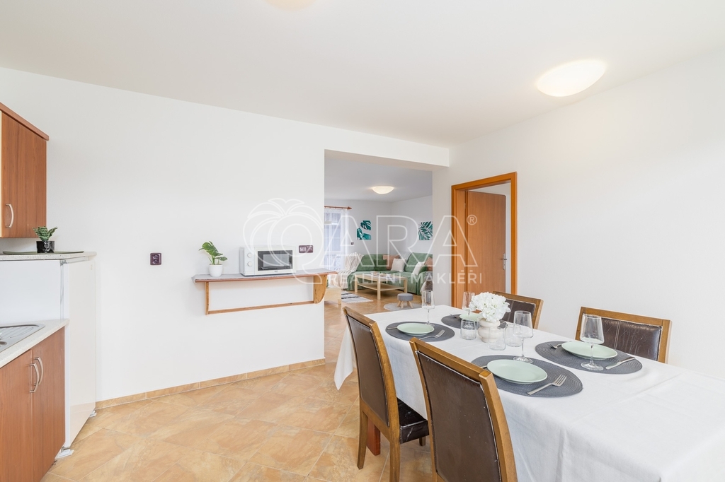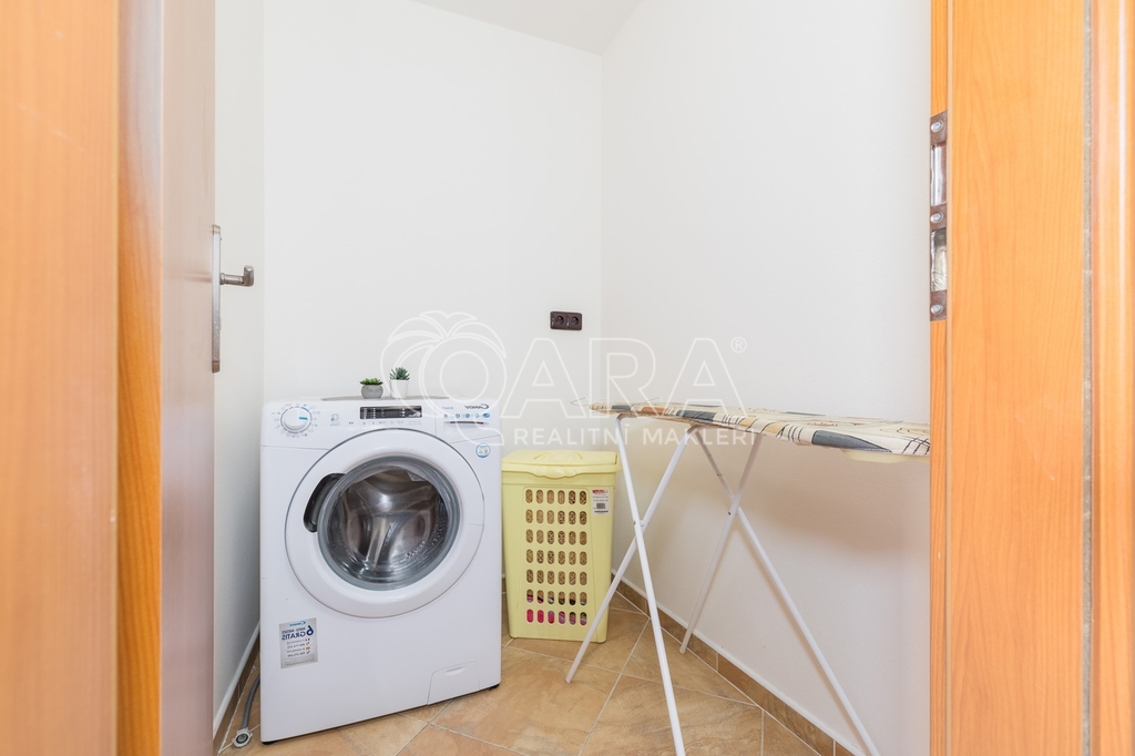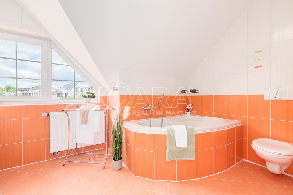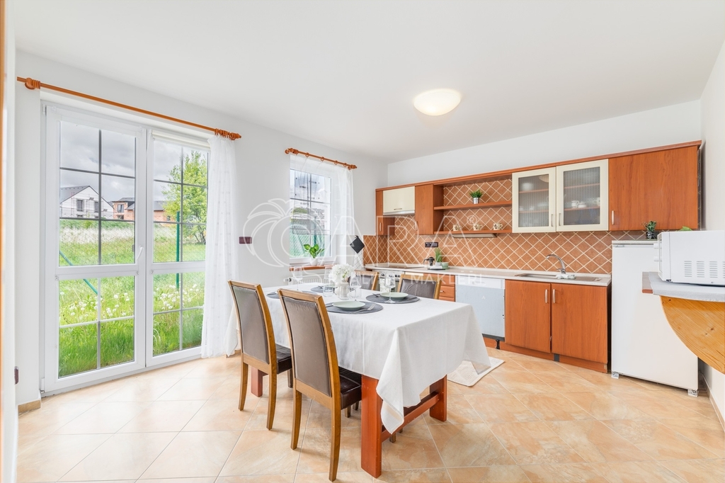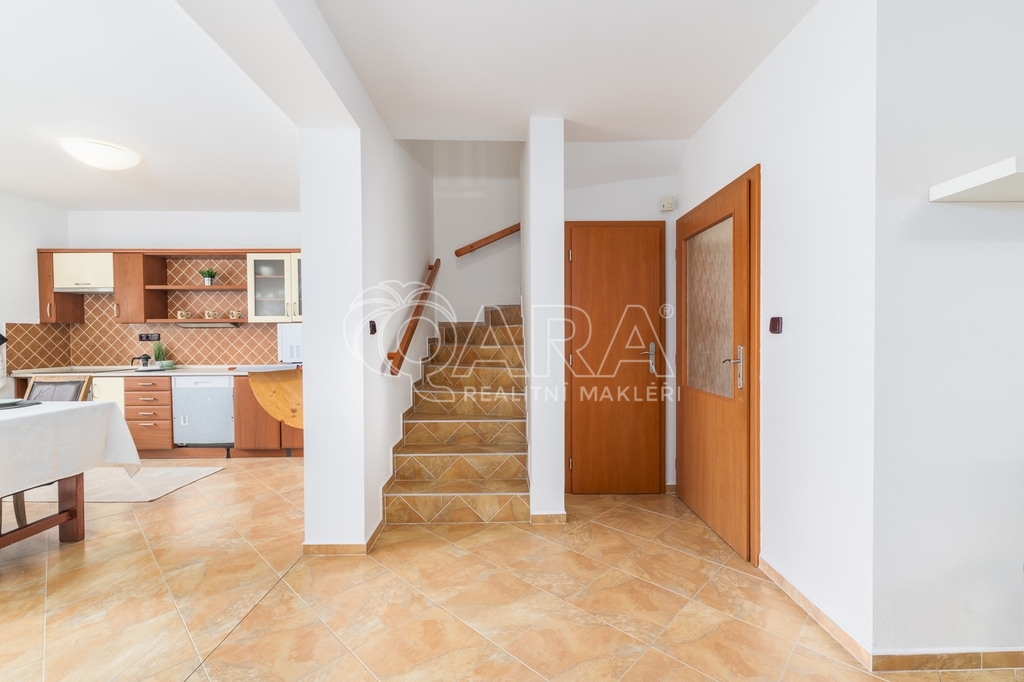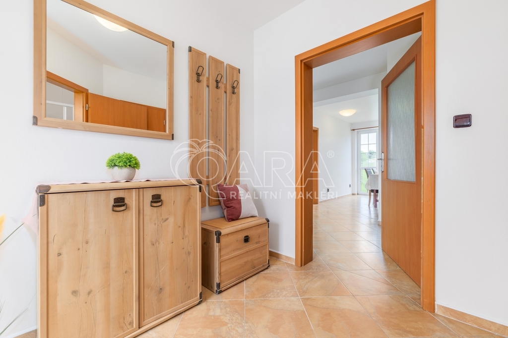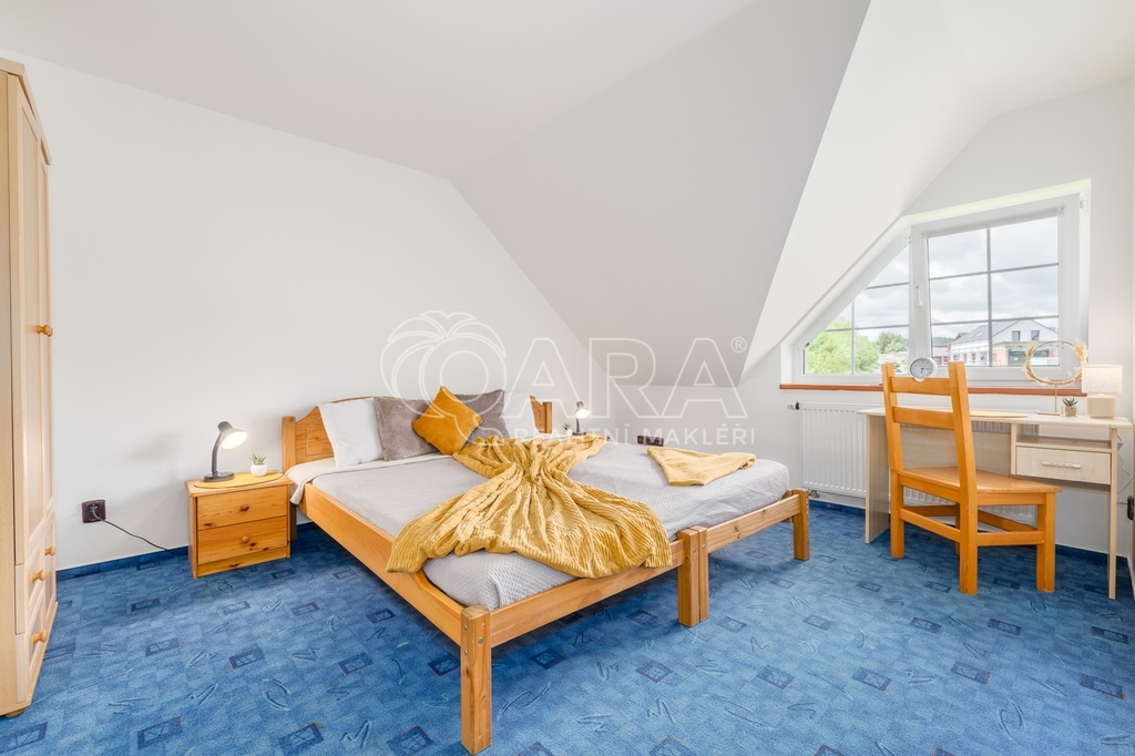 Dům jako takový poskytuje užitnou plochu o necelých 120 m² a je součástí řadového rodinného bloku. Nabízí pět obytných pokojů, dvě koupelny, prostorný obývací pokoj s kuchyní a jídelnou, technické komory a spíž. Vzdušný obývací pokoj doplňuje přímý vstup na zastřešenou terasu o výměře 14,5 m², ideální pro posezení a grilování. Z kuchyně je vstup přímo na zahradu náležící k domu o příjemné výměře 370 m², která poskytuje ideální klidné prostředí pro relaxaci nebo místo, kde se mohou děti bezpečně vydovádět. K praktičnosti domu přispívá také vlastní přístřešek na auto a zděný zahradní domek či skladovací místnost vhodná pro uložení sportovního vybavení nebo zahradní techniky. V případě potřeby dalších parkovacích míst je možné po domluvě dokoupit volná stání před domem.