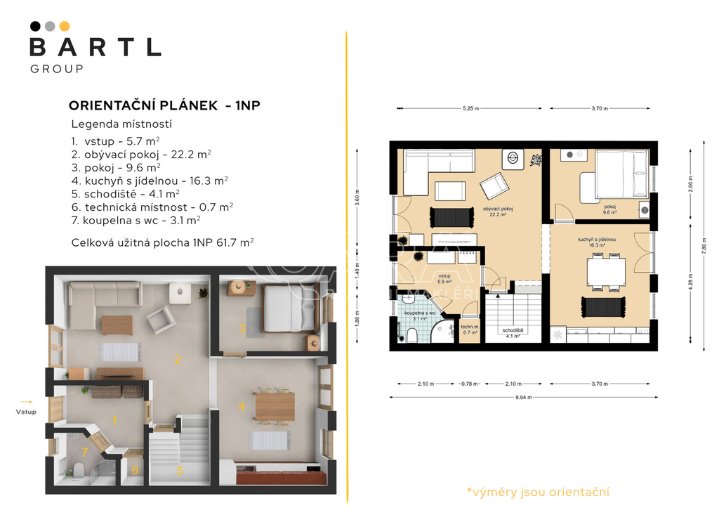Cena zahrnuje veškerý právní servis, poplatek za návrh na vklad na KN a provizi RK.