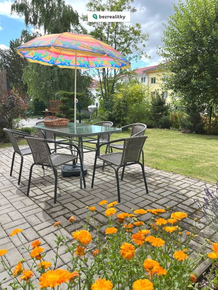 • K bytu náleží oplocená zatravněná zahrádka (78 m²) s terasou, přístupná přímo z obývacího pokoje – ideální pro ranní kávu nebo bezpečné hraní dětí.