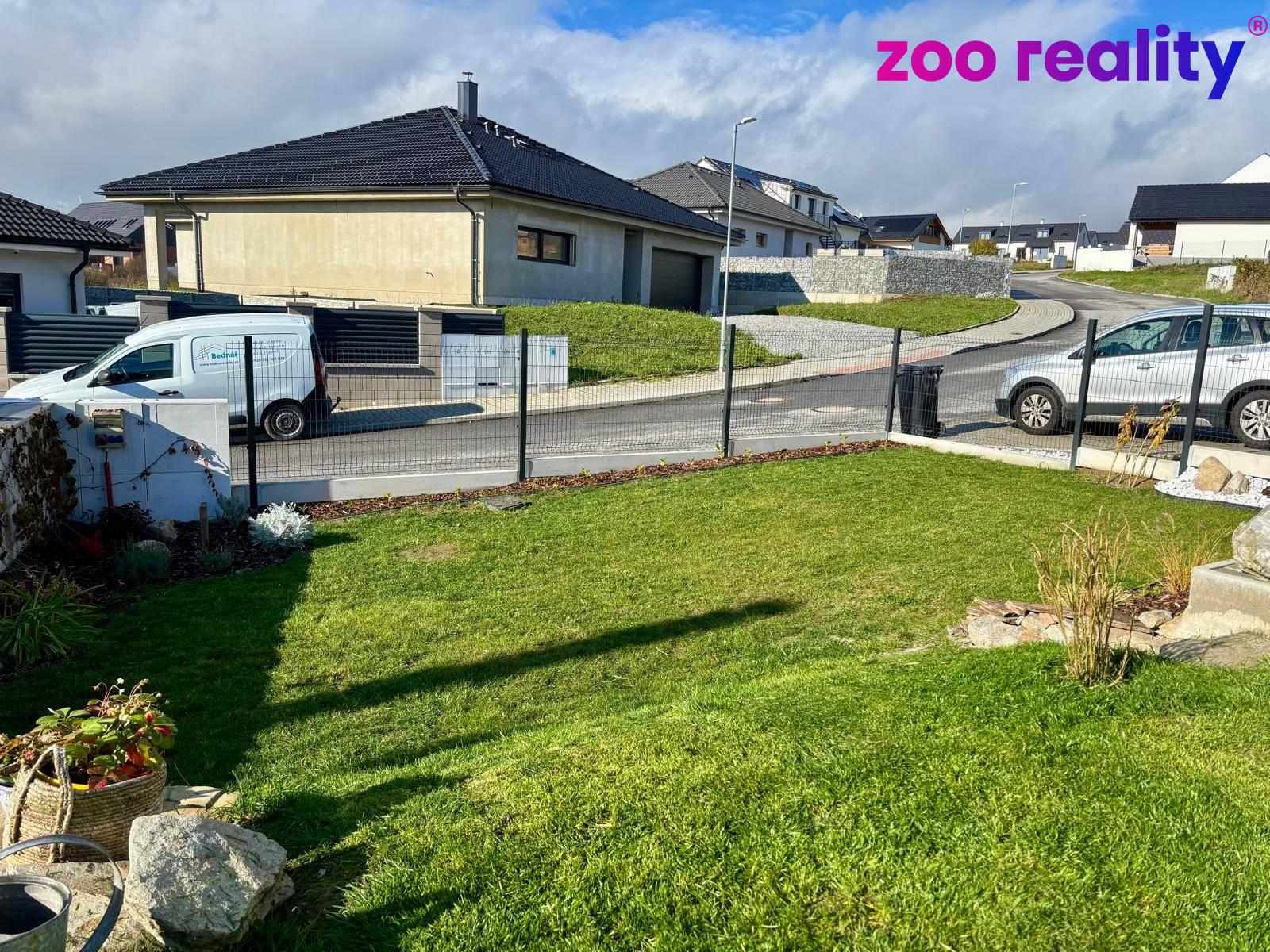 Z obývacího pokoje je přímý vstup na terasu, která je orientovaná na jihozápad. Na terasu navazuje zahrada o výměře 478 m², která poskytuje dostatek soukromí i prostoru pro relaxaci. Pozemek je nyní částečně oplocen. Parkování je zajištěno až třemi parkovacími stáními přímo u domu.