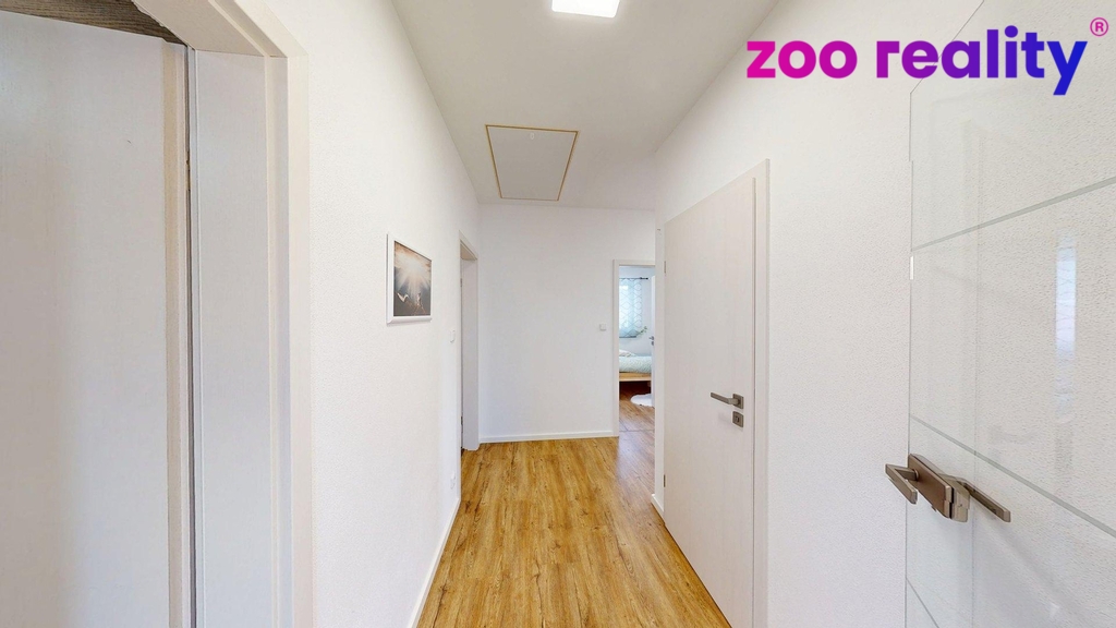 Dům s užitnou plochou 120 m² o dispozici 3+kk zahrnuje prostorný obývací pokoj propojený s jídelním koutem a kuchyní. Dále pak ložnici, která nabízí i komfort navazující koupelny a šatny. Následně pokoj, koupelnu, samostatné WC, praktickou spíž a technickou místnost. K dispozici je i půda jakožto úložný prostor.