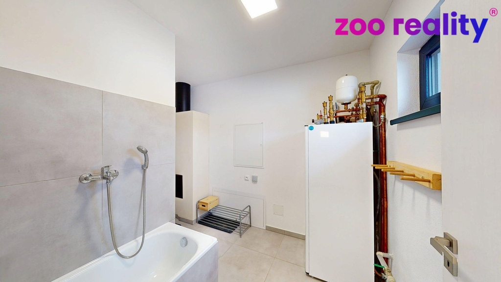 Vytápění je řešeno tepelným čerpadlem s podlahovým topením v celém domě. Příjemnou atmosféru i alternativní zdroj tepla, nabízí krb se zadním přikládáním, chytře umístěný ve zdi mezi obývacím pokojem a technickou místností. Díky tomuto řešení není nutné přikládat z obytného prostoru, což výrazně zvyšuje komfort a čistotu bydlení. Nevyužívaná plynová přípojka je na hranici pozemku. O kvalitní tepelnou i zvukovou izolaci se starají okna značky VEKRA, která jsou doplněna o elektrické venkovní žaluzie v každé místnosti.