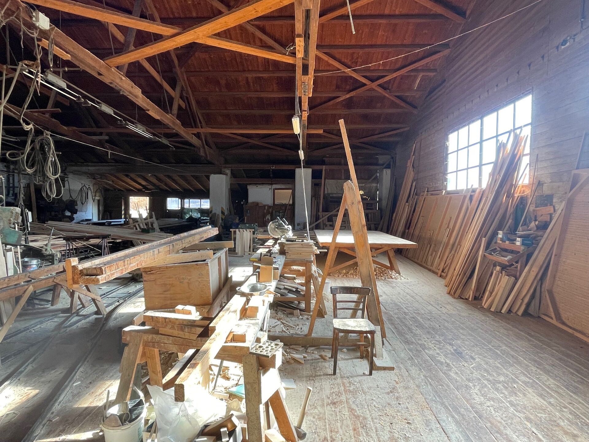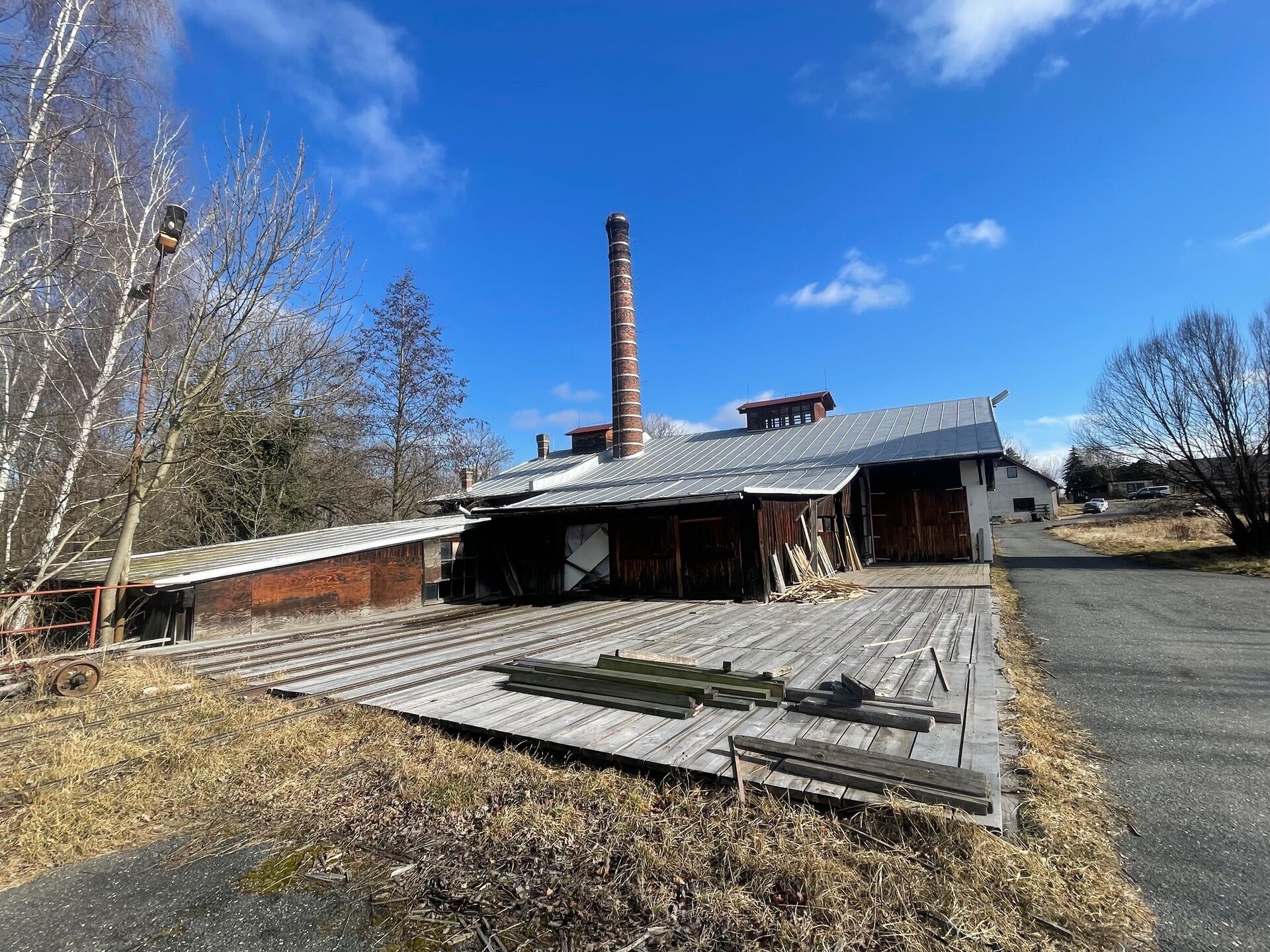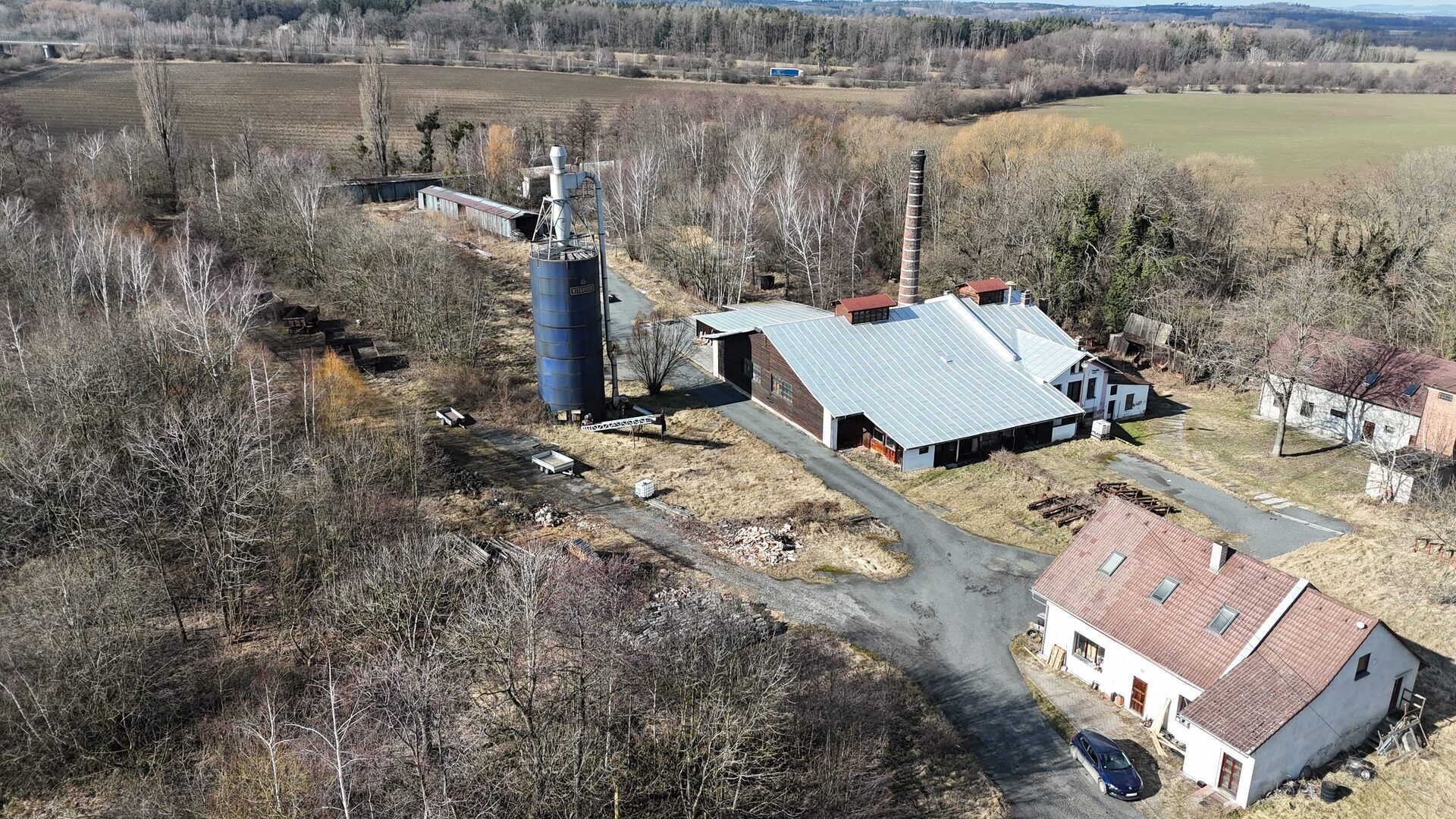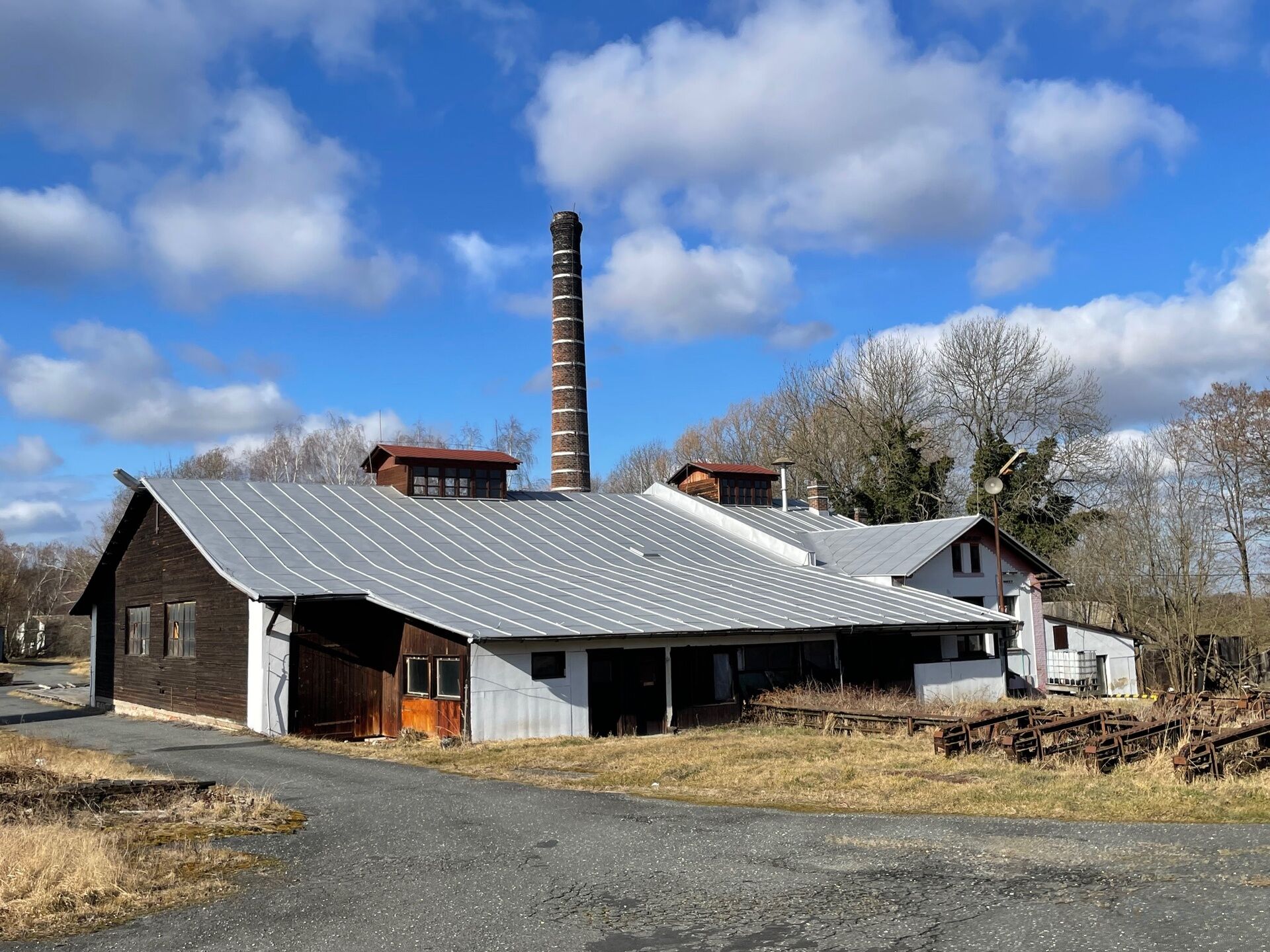 Součástí areálu jsou výrobní, skladové a administrativní budovy s celkovou zastavěnou plochou cca 1 500 m² (budova bývalé pily, sklady, dílny, kanceláře, zázemí, vrátnice) Celý areál je napojen na kompletní inženýrské sítě.