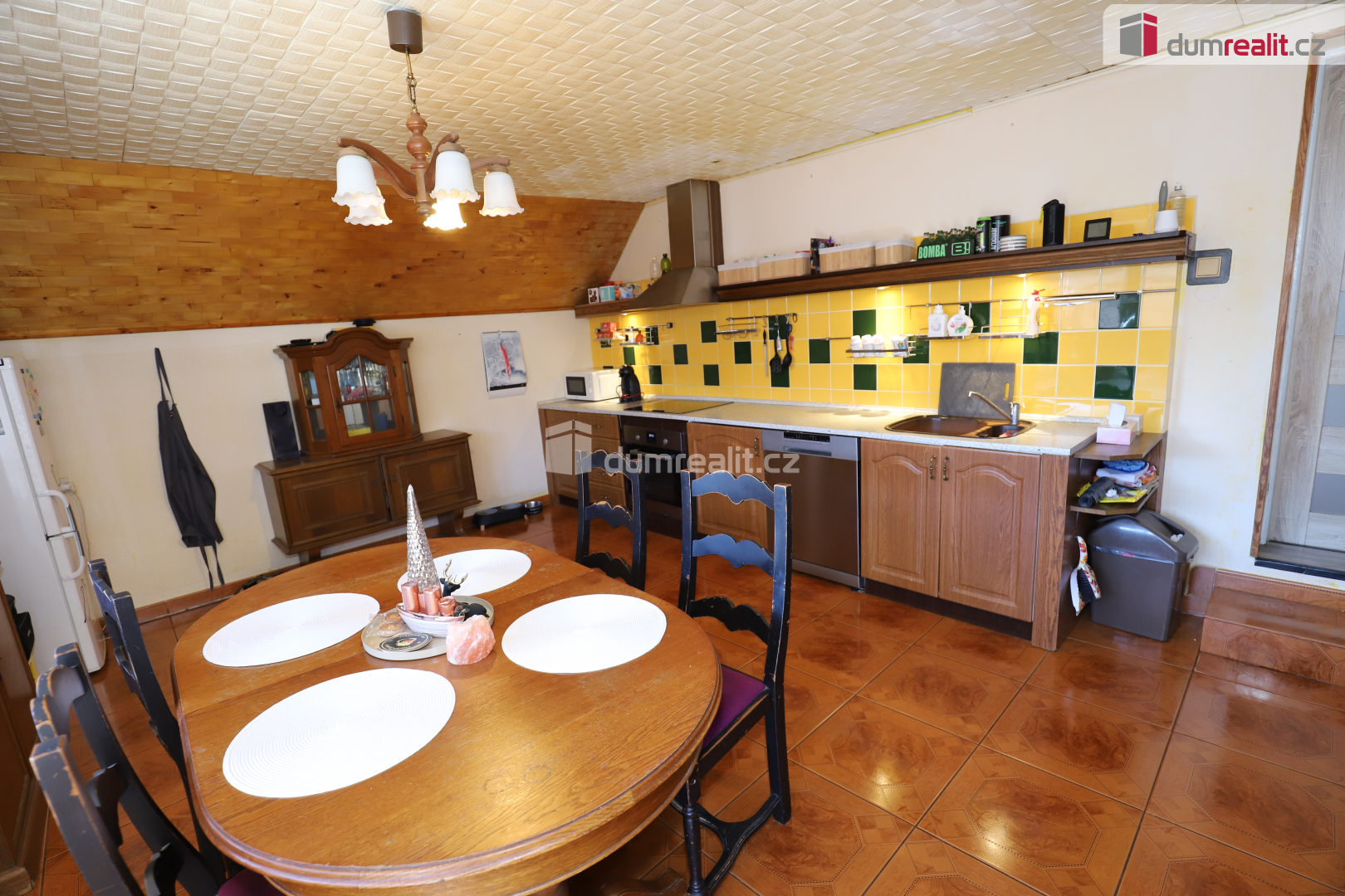 Naše společnost Vám zprostředkuje koupi vícegeneračního atypického rodinného domu, který nabízí jak zázemí pro bydlení, tak podnikání a pronájem. Budova má celkem cca 330 m² užitné plochy, 5 vchodů, zahradu a dělí se na mezonetový byt 4+1, garsonku a nebytový prostor/restauraci/bar/obchod. Přibližný výčet a rozdělení plochy 330 m² je 50 m² sklep, 50 m² půda, 24 m² garsonka, 120 m² byt, restaurace 90 m². Každý prostor má své sociální zařízení. Začněme bytem 4+1, který má svůj samostatný vchod ze zahrady, na kterou vcházíme skrze velká příjezdová vrata z ulice. Byt 4+1 se skládá z předsíně, ložnice, toalety, po schodech nahoru vcházíme do patra, kde je prostorný obývací pokoj, ložnice rozdělená do dvou úrovní třemi schody, velkorysá kuchyně s jídelnou, koupelna s rohovou vanou a druhou toaletou a místem na pračku a sušičku. U kuchyně je navíc prostorný balkon, který je též přístupný po samostatném schodišti ze zahrady a má vlastně svůj vlastní vchod opatřený mříží. Z balkonu je možné se dostat na půdu, která kopíruje velkou část plochy domu a poskytuje hodně úložného prostoru. Zpět na zahradu odkud se dostaneme do menšího baru, kde byla i diskotéka a posezení, bar, další místnost, úložná komora a sociální zázemí. Toalety jsou jak hned u vchodu ze zahrady tak u druhého vchodu z ulice. Obojí toalety jsou pánské i dámské. Prostor by se dal eventuálně ještě rozdělit na případně třeba obchod přístupný z ulice a bytovou jednotku přístupnou ze zahrady. Nyní je vlastně tento prostor průchozí z ulice až na zahradu. Dále je zde ještě další samostatná garsonka, má svůj vchod vedle vrat na zahradu, byla vytvořena z garáže, garáž by se dala obnovit. Garsonka má svou sprchu a toaletu. Centrální zahrada má rozlohu 65 m². Vytápění domu zajišťuje dva roky starý kondenzační kotel, v celém domě jsou radiátory, navíc v kuchyni a koupelně bytu 4+1 je podlahové vytápění. Okna jsou některá nová plastová, fasáda domu je v některých místech zateplená, elektroinstalace je částečně již v mědi, vodoinstalace a odpady jsou také částečně již v plastu. Střecha domu je plechová, celý dům je podsklepený, zde je dílna, místnost s kotlem a další technická/úložná místnost. Dům se nachází v Habartově na klidném místě, kde je zároveň možné dobře zaparkovat. V obci je veškerá občanská vybavenost včetně školy, školky, městského úřadu, Tesca, je zde in-line dráha a koupaliště Boden, jezero Medard, města Sokolov i Karlovy Vary jsou vzdáleny cca 15 minut jízdy. Cena zahrnuje veškerý právní servis i provizi RK. Ev. číslo: 655369.