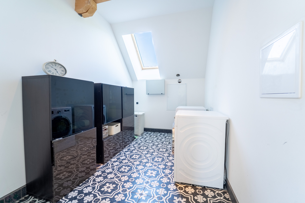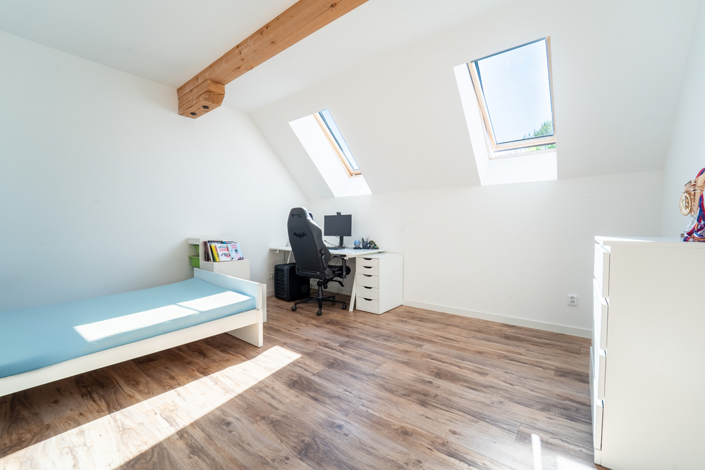 • V 1. patře se nachází prostorný moderní byt s podlahovým vytápěním, dispozicí 6+KK o výměře 200 m² se dvěma koupelnami.