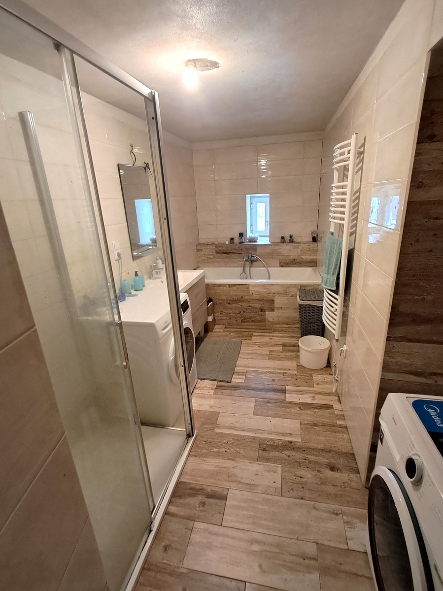 1.NP (přízemí) je dispozičně řešeno jako 3+1 a nachází se zde zděná veranda, samostatné WC, předsíň, 3x pokoj, kuchyně a prostorná koupelna se sprchovým koutem, vanou, místem na pračku a sušičku. Na dům navazuje dílna se skladem a stodola o výměře 47 m2.