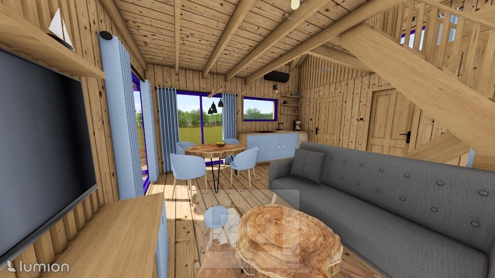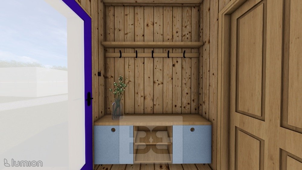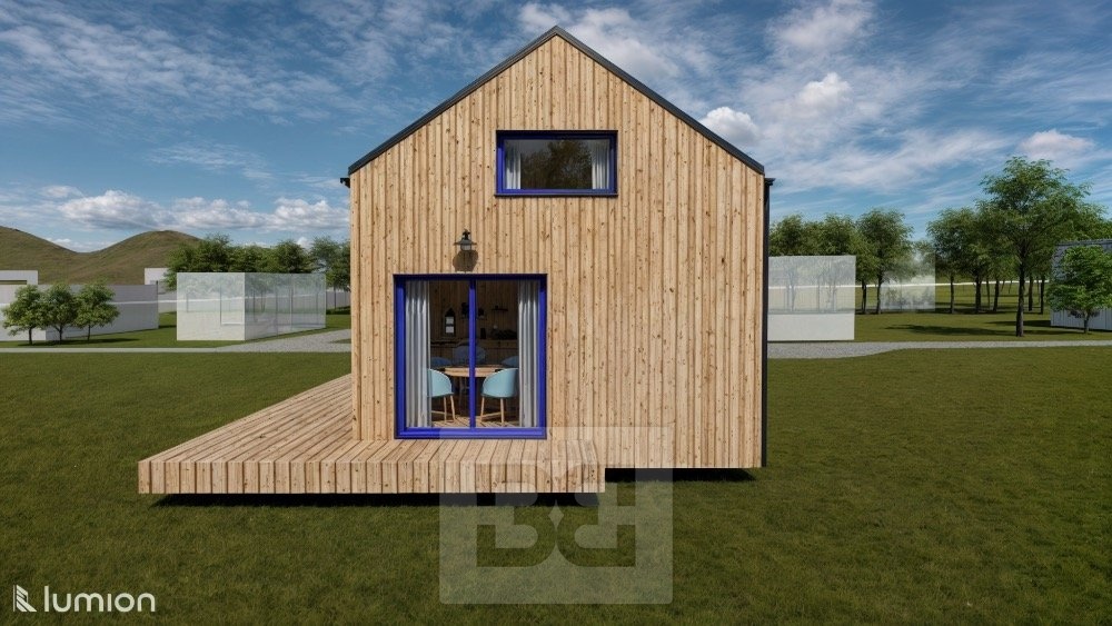 • přízemí: obývací místnost (19,91 m2), zádveří (3,65 m2), koupelna/WC (3,65 m2)