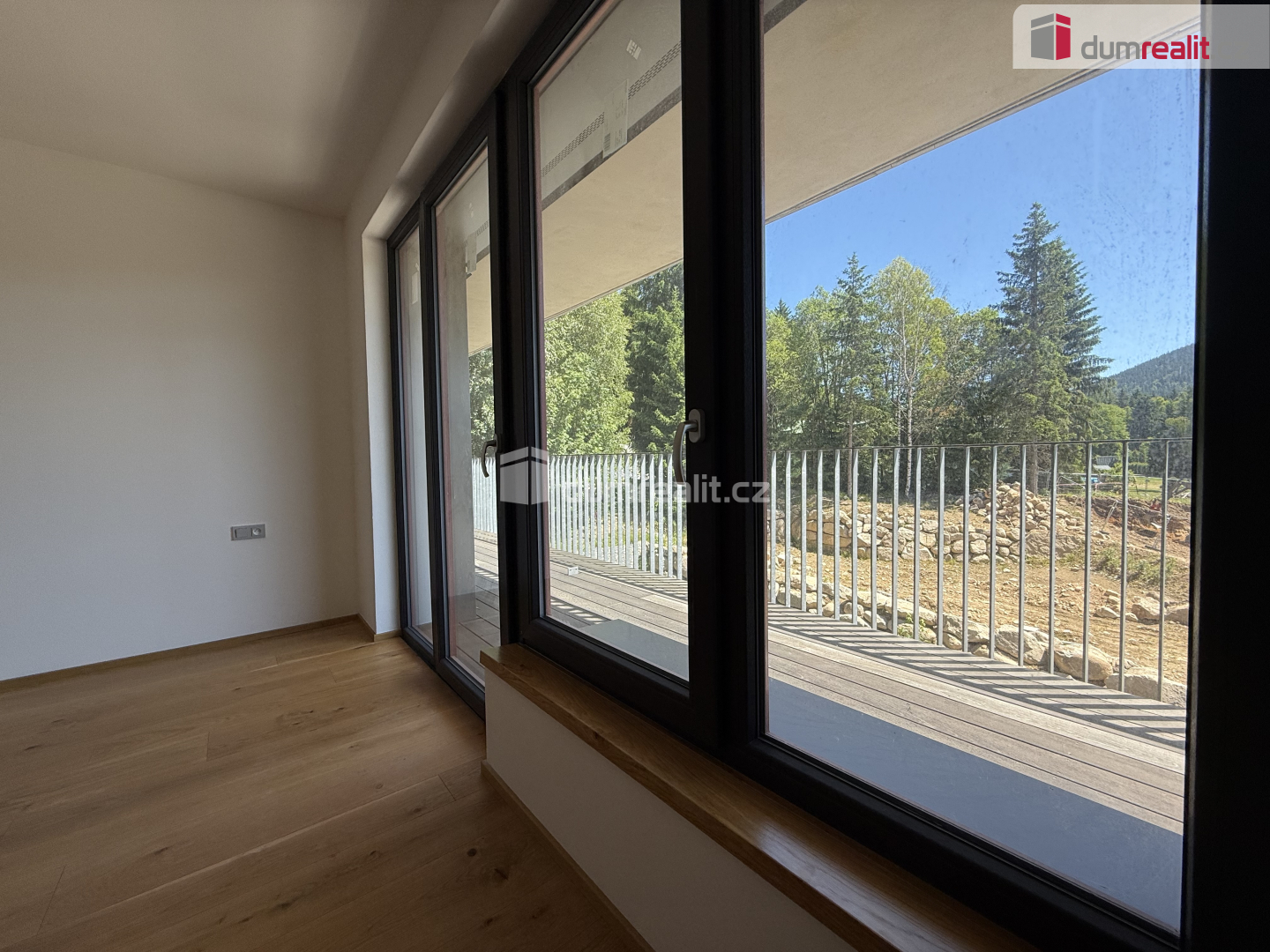 Pronájem světlého apartmánu 1+1 s šatnou a terasou – Vitality Residence, Harrachov (44 m² + terasa 8,5 m²)