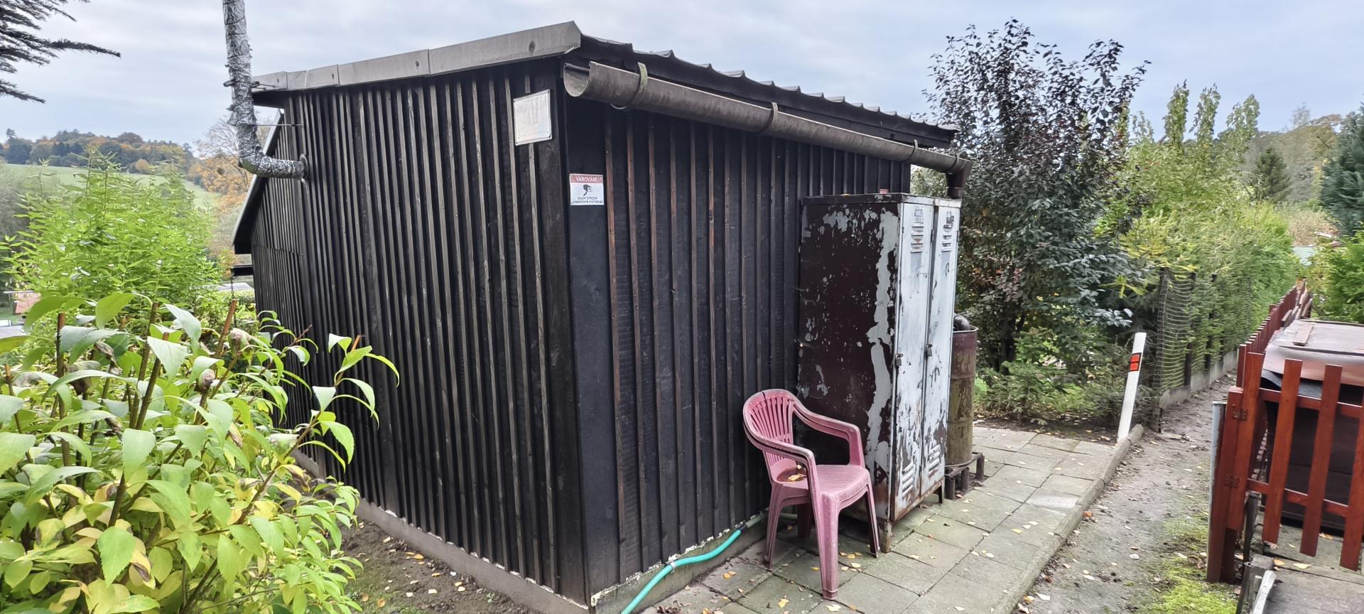 2 suchá WC, 3 × 3 m plechová bouda na nářadí