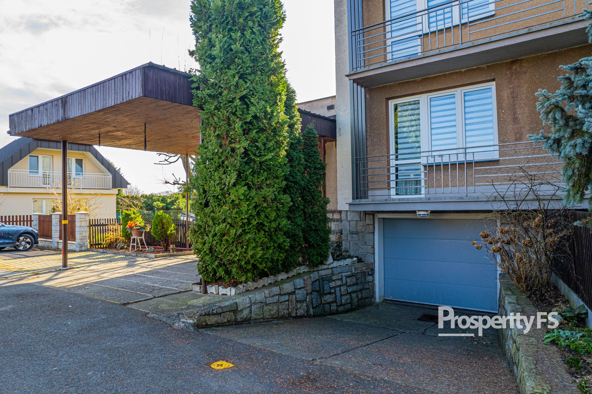 Celý dům je kompletně podsklepený, součástí je i garáž pro dvě auta a další velká garáž pro karavan – prostoru je zde opravdu dostatek. K dispozici jsou i venkovní parkovací místa.