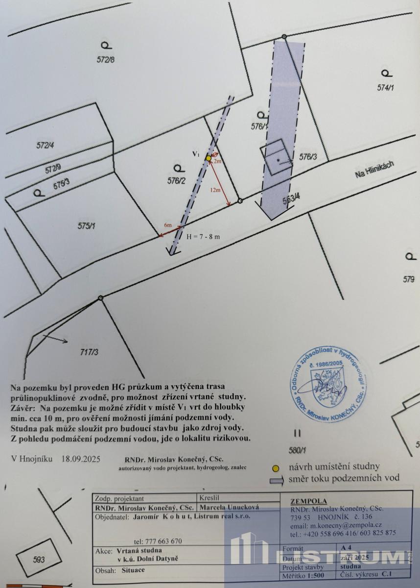 Napojení na vodovodní řad možné není z důvodu jeho vzdálenosti a přístupu přes několik soukromých pozemků. Za tím účelem byl proveden HG průzkum, kdy bylo zjištěno, že na pozemku je podzemní zdroj vody pro studnu, viz. foto.