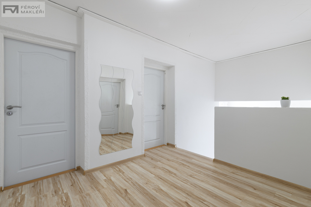Pokud hledáte bydlení v blízkosti centra města a nespokojíte se s malým domkem, do kterého se sotva vejdete, tahle vila by pro vás mohla být ideálním řešením. Zároveň může jít i o zajímavou investiční příležitost – dům lze pronajímat větší rodině nebo dokonce dvěma samostatným domácnostem. Jedná se o rodinný dům s garáží z roku 1986, který uspokojí i početnější rodinu. Dům nabízí dva samostatné byty o dispozicích 5+1 a 1+1, dále šatnu, komory, technickou místnost a menší sklep. Součástí domu je prostorná vstupní hala s krbem, která vytváří příjemnou atmosféru hned při vstupu. K pohodlí bydlení přispívá také velký obývací pokoj s jídelnou a balkonem, odkud je pěkný výhled do zahrady i na přilehlý les, vše je dobře vidět na přiložených půdorysech jednotlivých pater. Dům je celkově velmi prostorný a prakticky řešený. Každý člen rodiny zde může mít svůj vlastní pokoj i dostatek soukromí. Zahrada je udržovaná a velikostně tak akorát:-)– poskytne prostor pro relax i posezení, aniž by vyžadovala náročnou údržbu. Grilování a posezení je možné na zastřešené terase, na kterou se vstupuje přímo z přízemí domu.