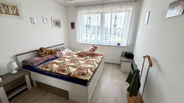 Nabízíme k pronájmu moderní zděný byt 3+kk o výměře 79 m², kolaudovaný v roce 2021. Byt se nachází ve 2. nadzemním podlaží a byl postaven podle nejnovějších technologií – včetně rekuperace a kvalitního zateplení. Díky tomu má velmi nízké měsíční náklady a spadá do energetické třídy A.Součástí je nádherná kuchyňská linka s vestavěnými spotřebiči. Byt je napojen na městskou vodu, kanalizaci, plyn i elektřinu. V celém bytě je podlahové plynové vytápění s kombinovaným kotlem pro ohřev teplé vody. Komfort zvyšují plastová okna s trojskly a elektrickými venkovními žaluziemi.Dispozice zahrnuje koupelnu se sprchovým koutem a samostatné WC. K bytu náleží venkovní sklep umístěný hned vedle jednotky a jedno garantované parkovací stání přímo před domem.Byt se pronajímá nezařízený (kromě kuchyňské linky) - na současných fotografií je vyfoceno zařízení nájemníka, který nájem končí a stěhuje se jinam.Byt je volný k nastěhování od 1. 7. 2026.Vratná kauce ve výši 40.000 Kč je podmínkou.