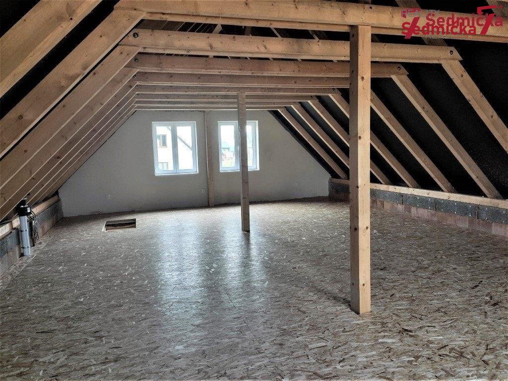 V přízemí domu je obývací pokoj spojený s kuchyní, ložnice , pokoj, koupelna, WC, chodba, technická místnost a vstupní prostor. V podkroví se také otvírá možnost případného využití volného půdního prostoru bez příček s podlahou z OSB desek a kročejovou izolací, s připravenou elektroinstalací a odpady. Kolem domu je prostorná rovinatá zahrada, do které se dá vyjít také francouzskými dveřmi, přímo z obývacího pokoje.