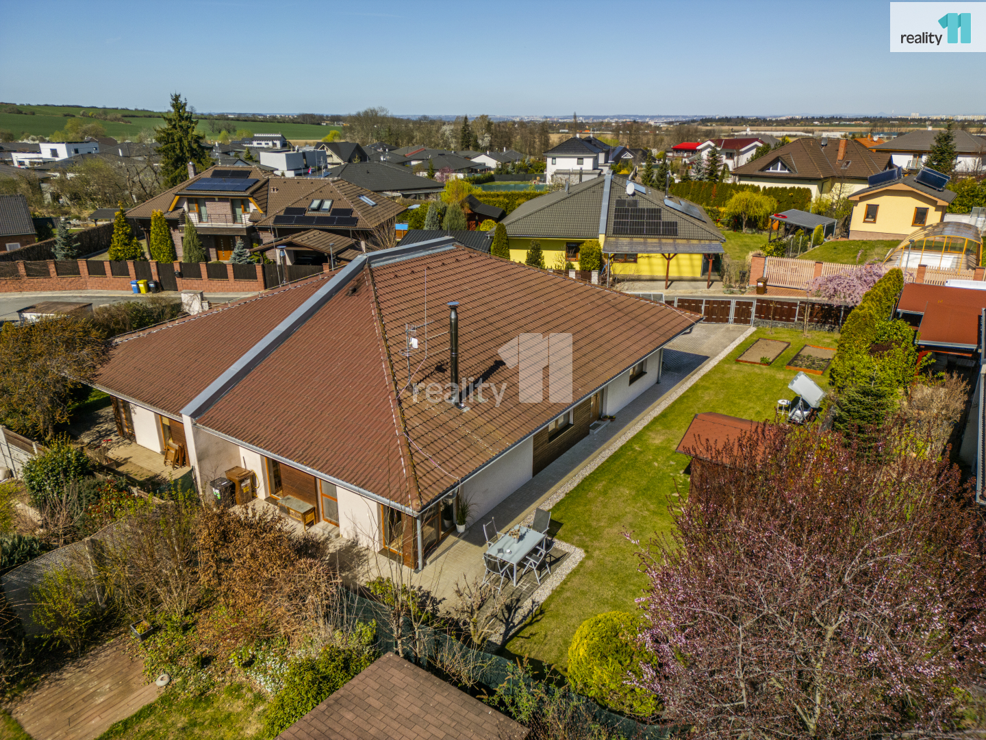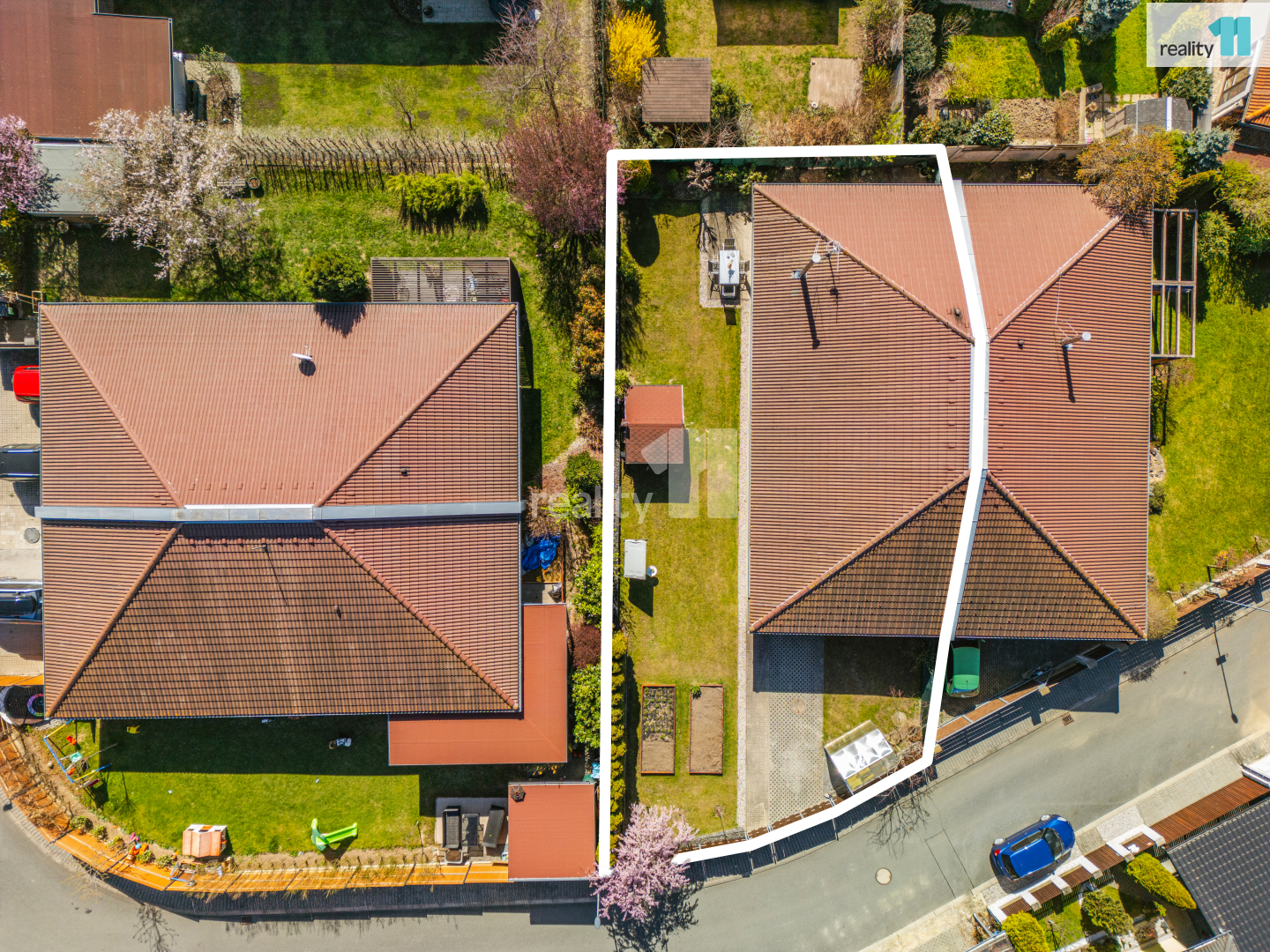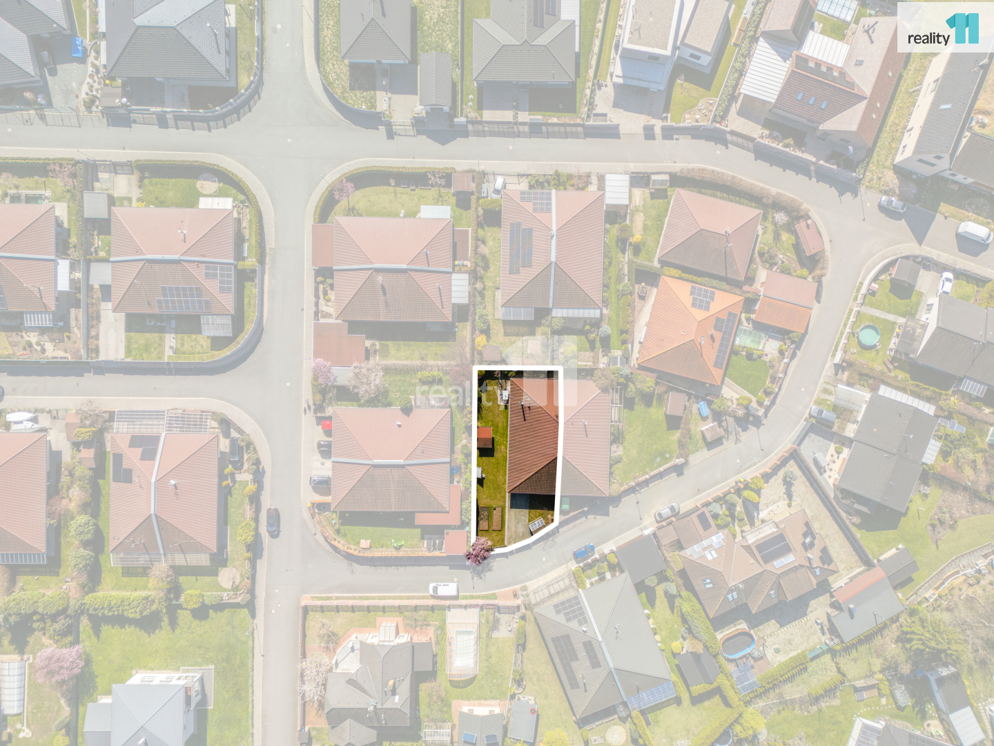 Užitná plocha domu činí přibližně 101 m² a je situován na pozemku o výměře 453 m². Dominantou interiéru je obývací pokoj s kuchyňským koutem a jídelní částí, odkud je zajištěn přímý vstup na terasu a do udržované zahrady. Ta poskytuje dostatek soukromí pro relaxaci, rodinné posezení i volnočasové aktivity. Součástí zahrady je také praktický zahradní domek pro uskladnění nářadí a sezónního vybavení.