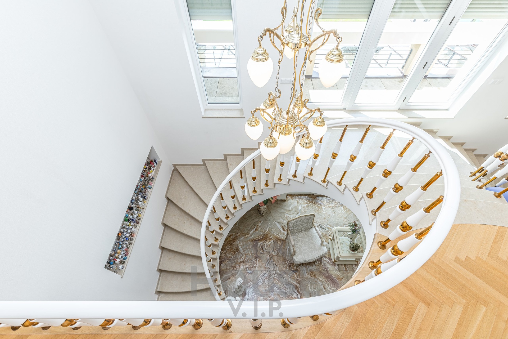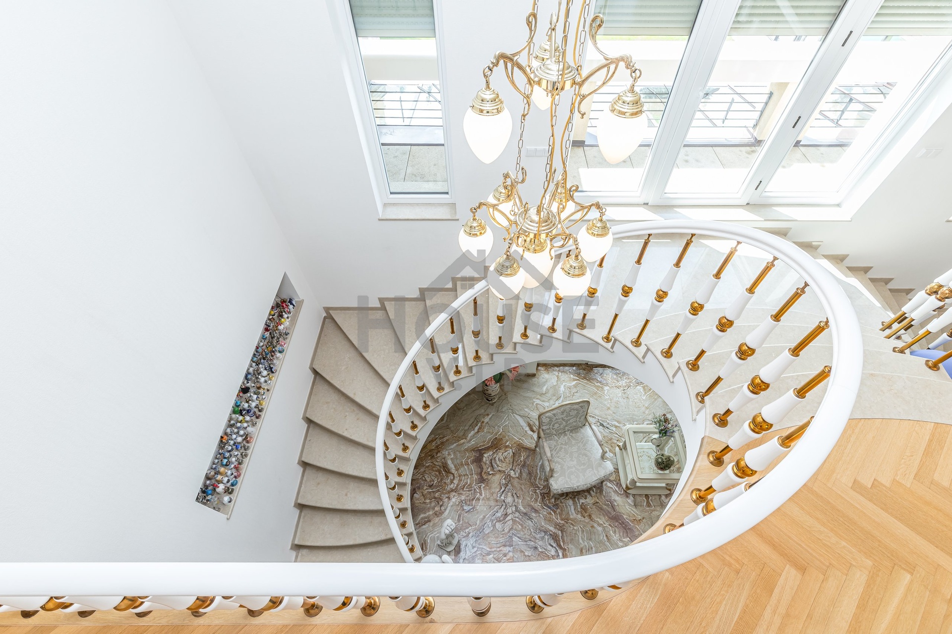 Nádherné mramorové schodiště do prvního patra