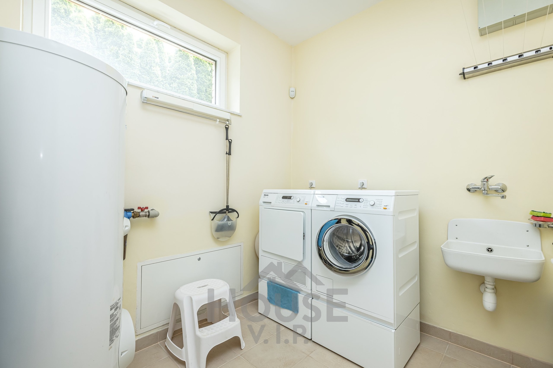 Všude domácí spotřebiče Miele. Italský a španělský nábytek, italské lustry.