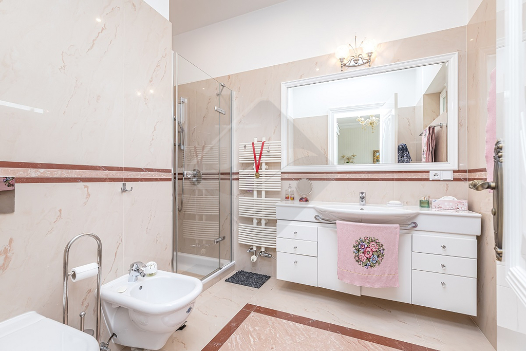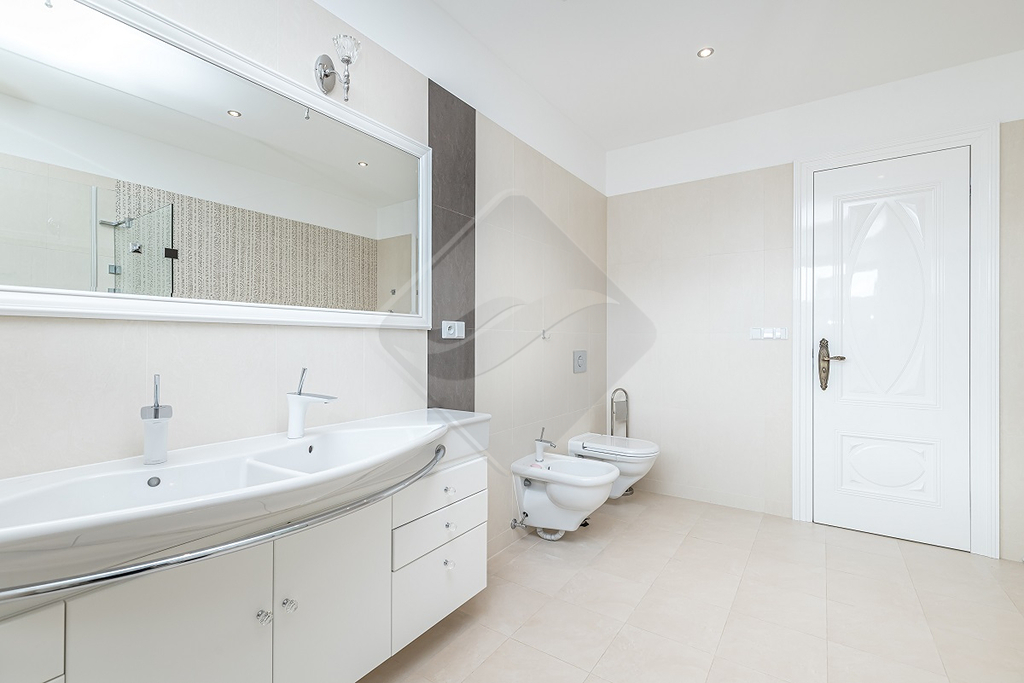 Dále jsou zde 2 ložnice, každá s vlastní toaletní místností, vybavenou sprchou a bidetem, a toaleta pro návštěvy.