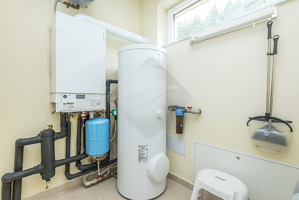 V celém domě je podlahové vytápění. K dispozici jsou 2 kotelny s plynovými kotli.