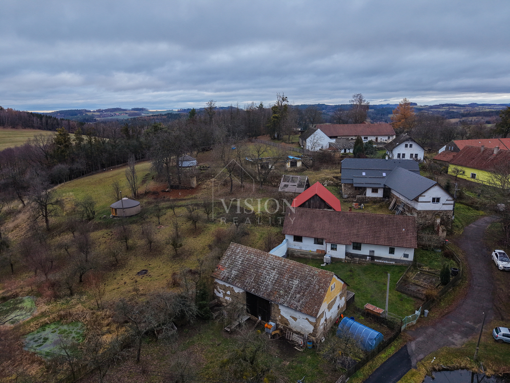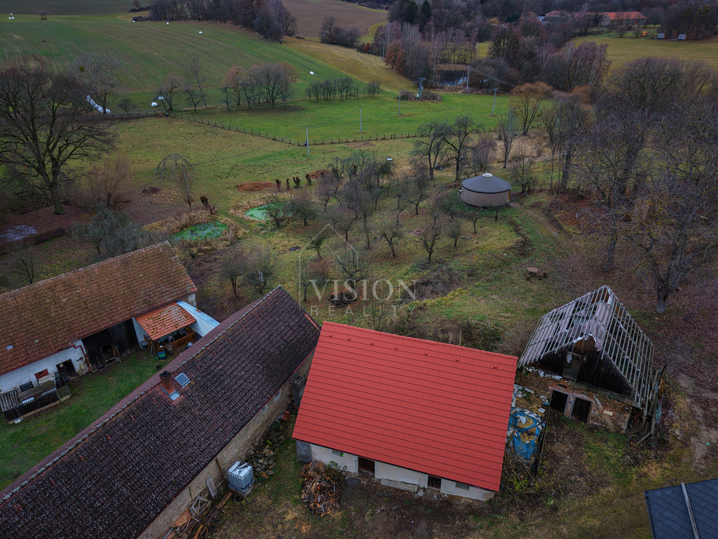 Na pozemku o rozloze 21829 m² se kromě zemědělské usedlosti nachází také další stavení které lze využít jako sklad, dílnu nebo jej rozšířit na další obytný či provozní prostor a na pozemku jsou dvě jurty, které již generují stabilní výnos. Součástí je i vlastní vrt, který zajišťuje dostatečný zdroj vody pro domácnost i zahradu. Díky tomu je možné vytvořit rozlehlý rezidenční areál, podnikatelský projekt, rekreační zázemí či jiné ambiciózní plány, které vyžadují velkorysý prostor.