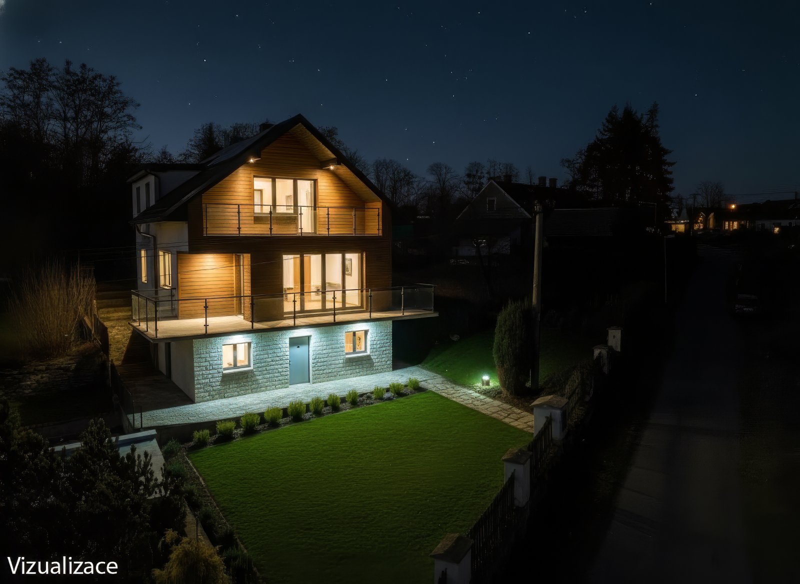 Terasy lemují jak přízemí, tak podkroví – s výhledem do klidné ulice i do zahrady.