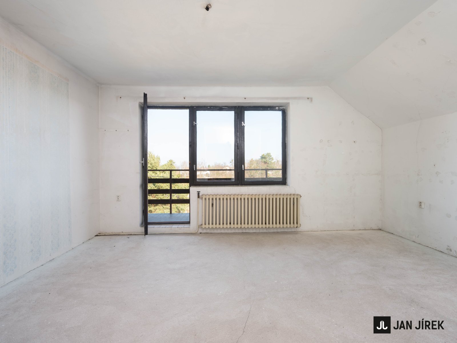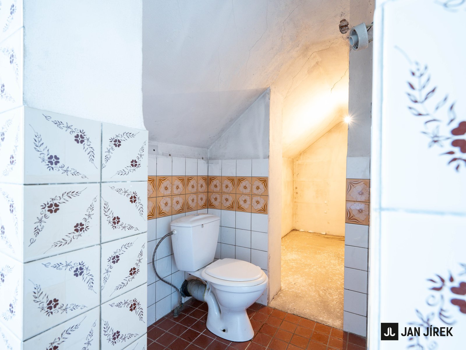 Schodiště na chodbě vás zavede do obytného podkroví, kde naleznete dvě menší ložnice, hlavní ložnici a koupelnu s toaletou. Světlá výška činí 2,5 m.