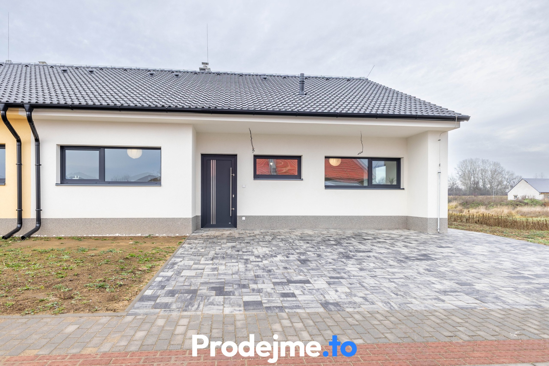 Dům nabízí skutečně velkorysý prostor a praktické dispoziční řešení! Ihned po dovnitř se ocitnete v předsíni. Z té se dostanete do přilehlé technické místnosti a do obrovského obývacího pokoje s kuchyňským koutem, který propojuje dům se všemi dalšími místnostmi. Najdete zde tak vstupy do 2 dětských pokojů, luxusně vybavené koupelny se sprchovým koutem, vanou a toaletou a vstup do ložnice. Ta díky své orientaci do zahrady zajišťuje dokonalé soukromí a podmínky pro načerpání energie. V obývacím pokoji vás také potěší francouzská okna vedoucí na rozlehlou krytou terasu se zámkovou dlažbou. Elektřina i voda je zde vyvedená v nezámrzném systému, takže ji můžete využívat celoročně. Nad domem je půda, která poskytuje dostatek místa pro uložení všech vašich nezbytností.