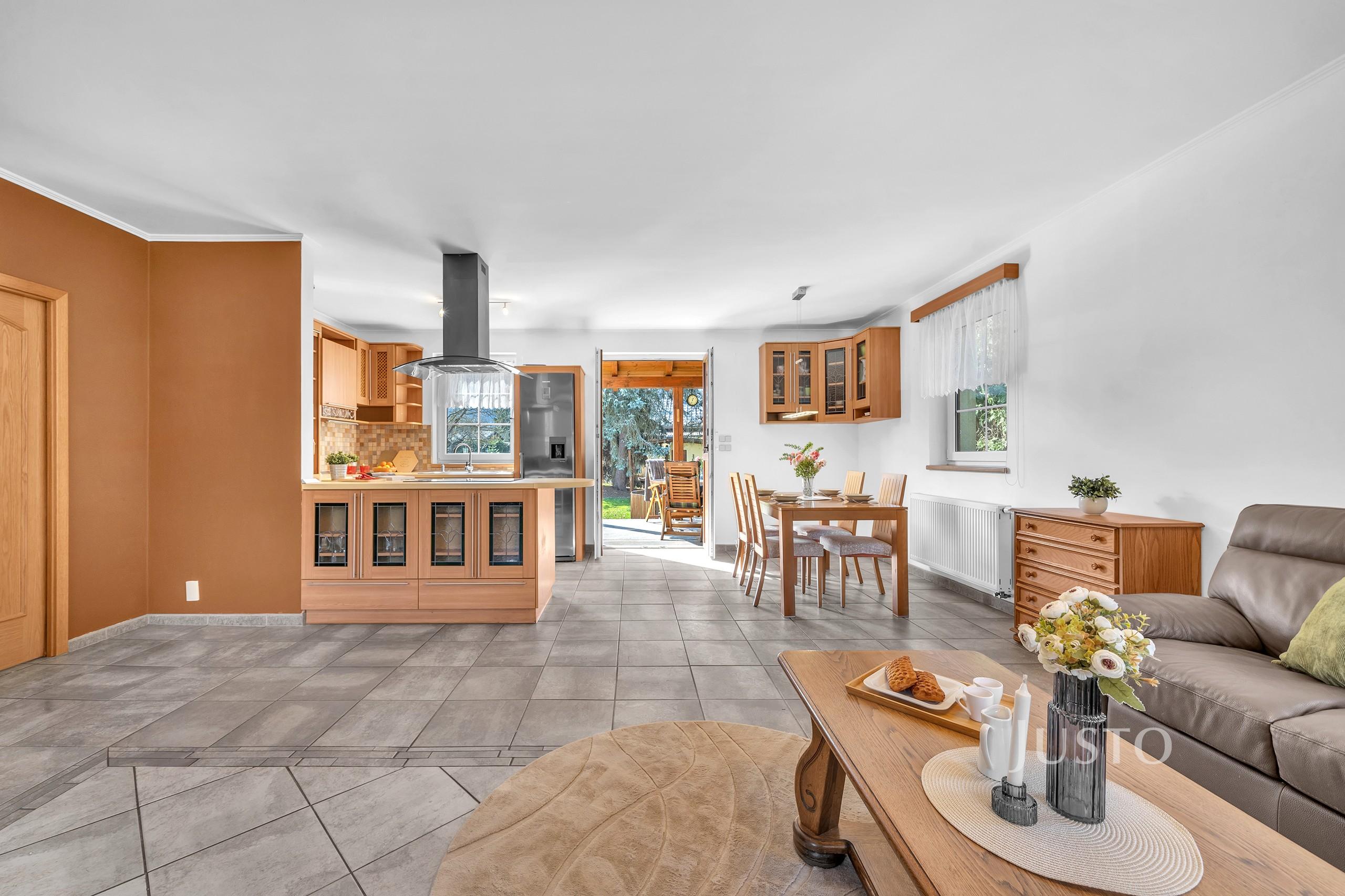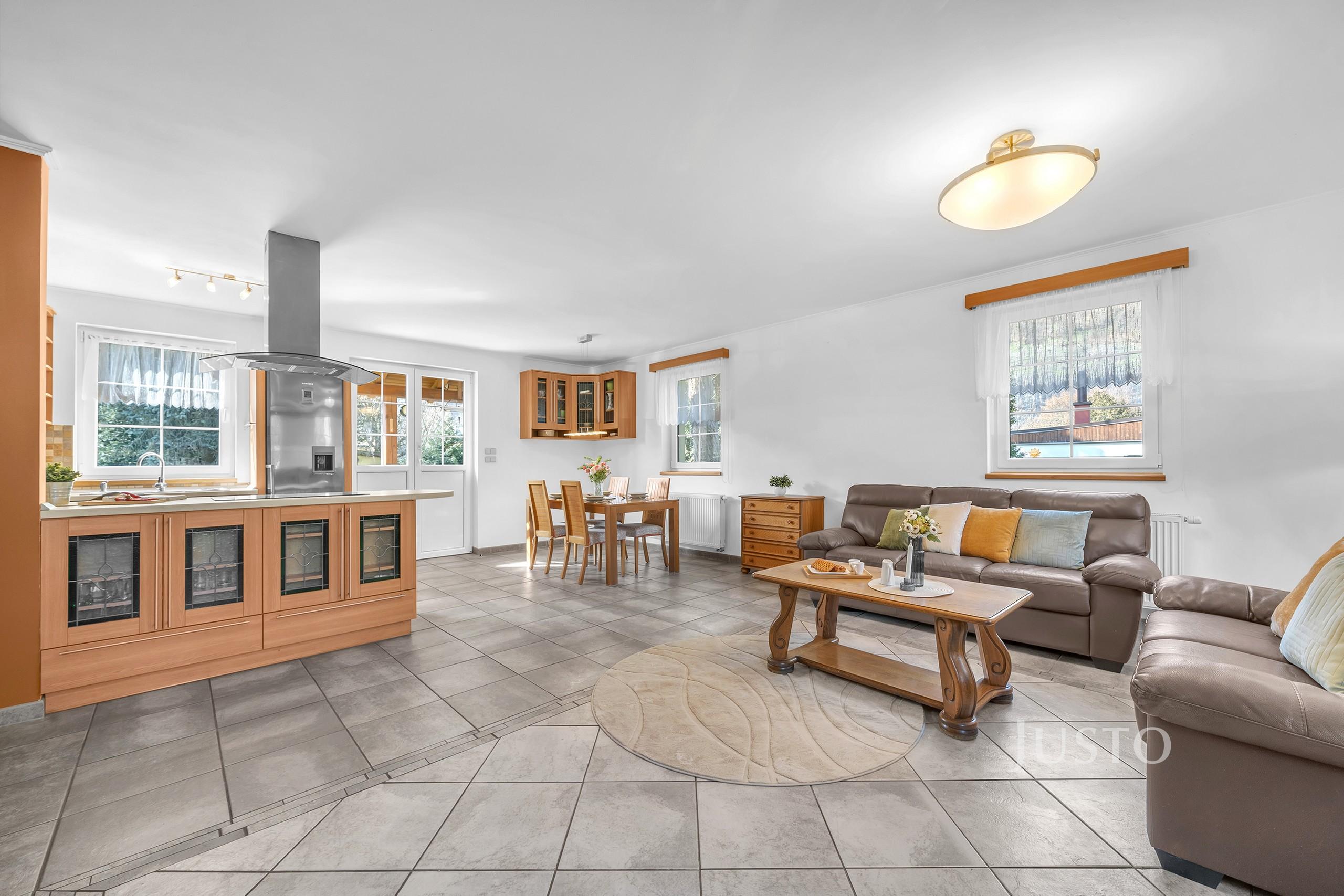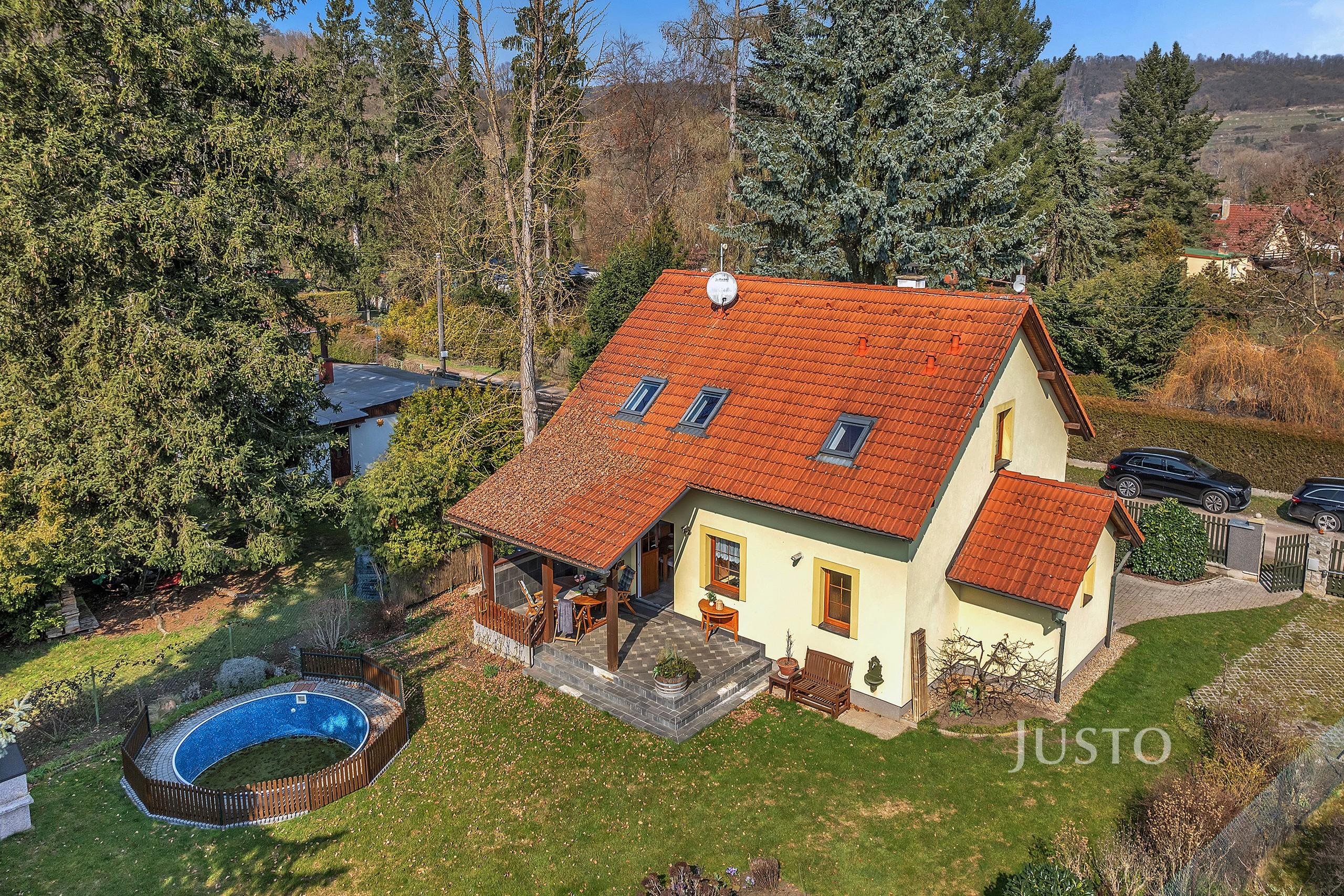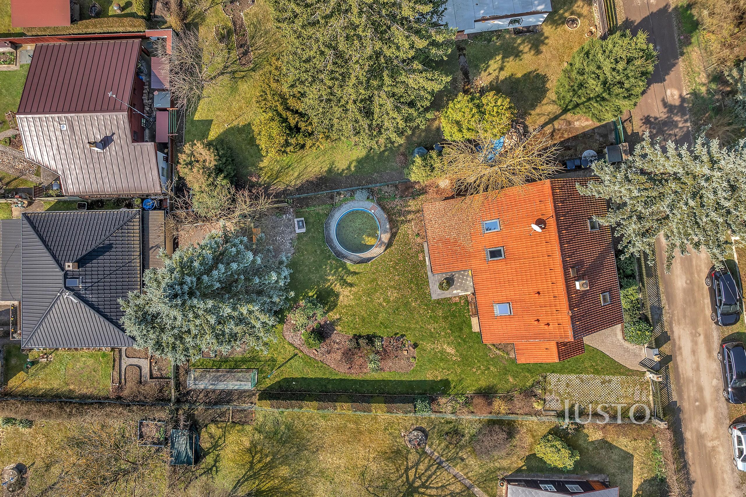 Chata stojí na pozemku o celkové ploše cca 646 m² a nabízí užitnou plochu cca 120 m².