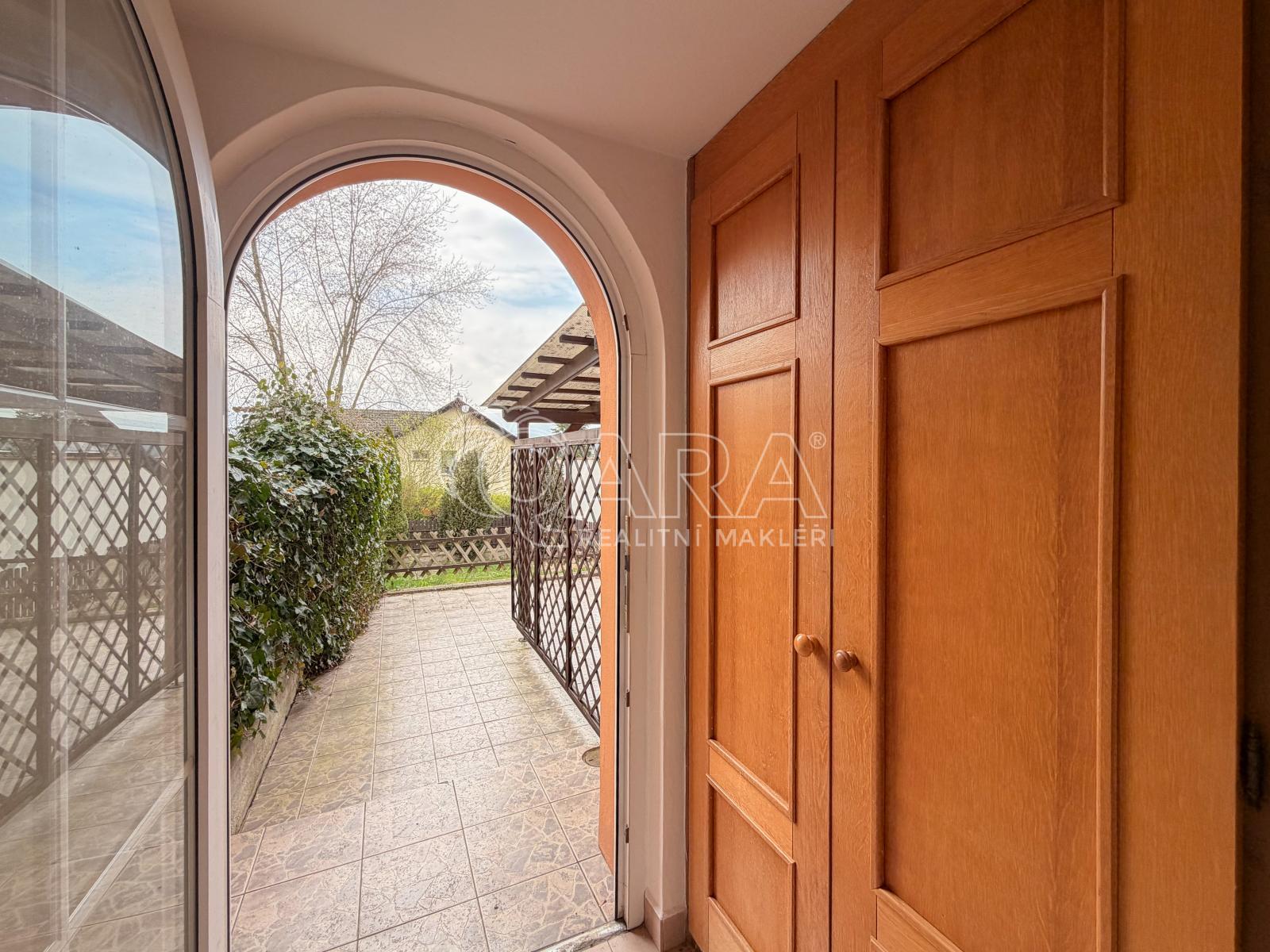 K domu přiléhá zastřešená terasa, která nabízí příjemné posezení za každého počasí. Součástí pronájmu je také předzahrádka a zahrada za domem o výměře 175 m ideální prostor pro děti, odpočinek nebo letní grilování. Dům je vybaven satelitní televizí a vysokorychlostním internetem, takže je vhodný i pro práci z domova.