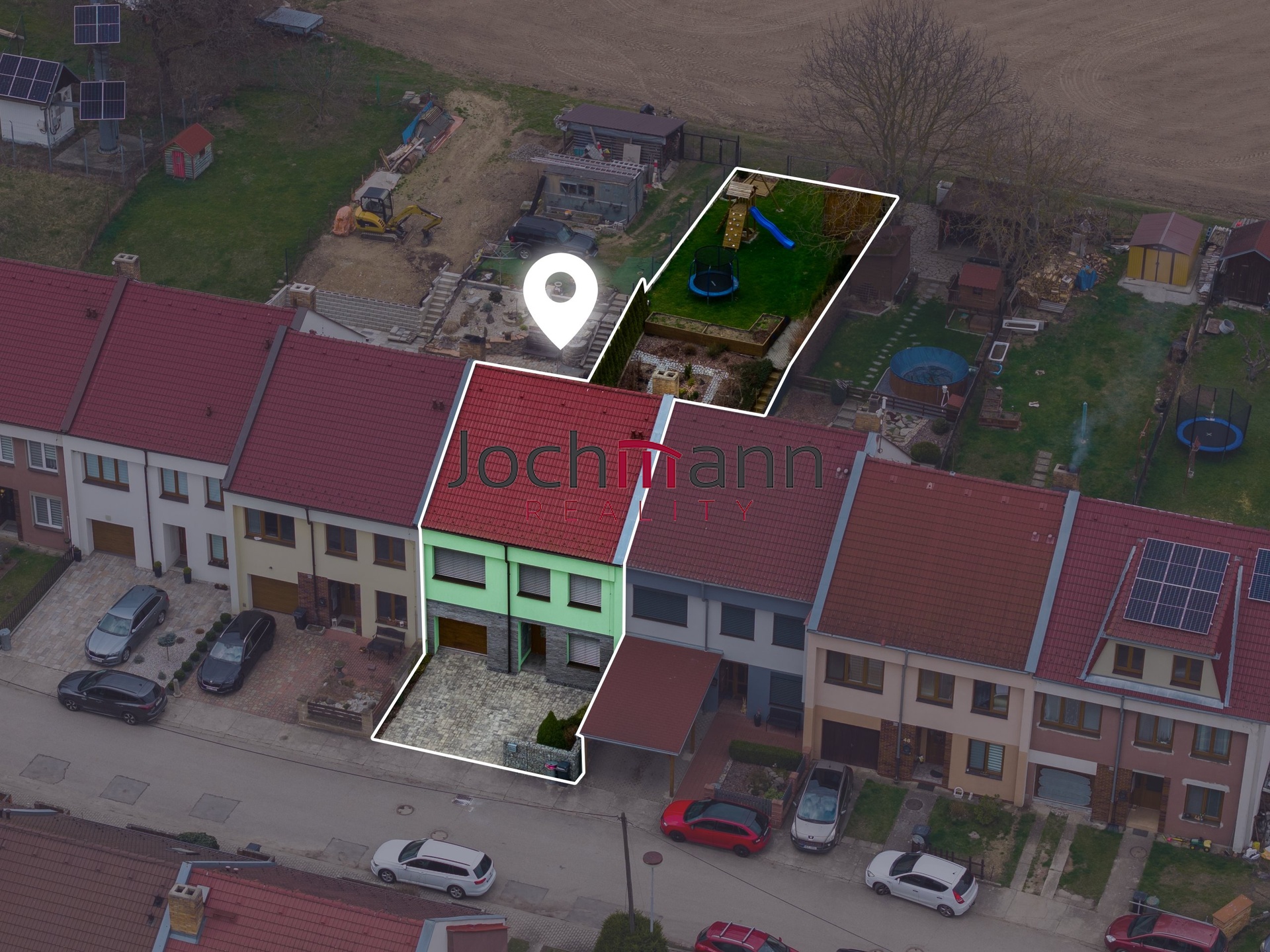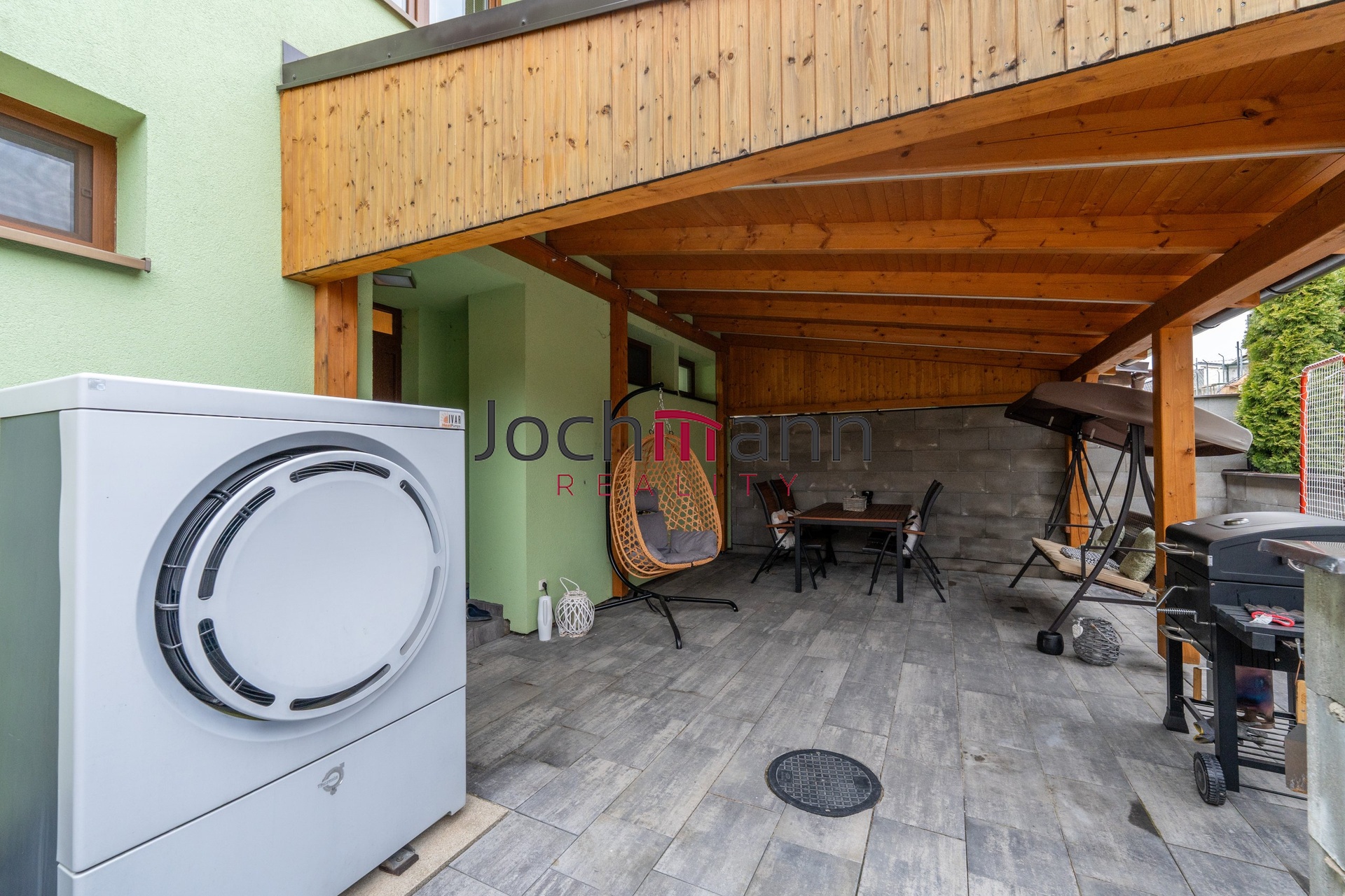 Za domem na Vás čeká krytá pergola, která přirozeně rozšiřuje obytný prostor směrem do zahrady – ideální místo pro letní večery s rodinou i přáteli. Zahrada nabízí dostatek prostoru pro děti i relaxaci.