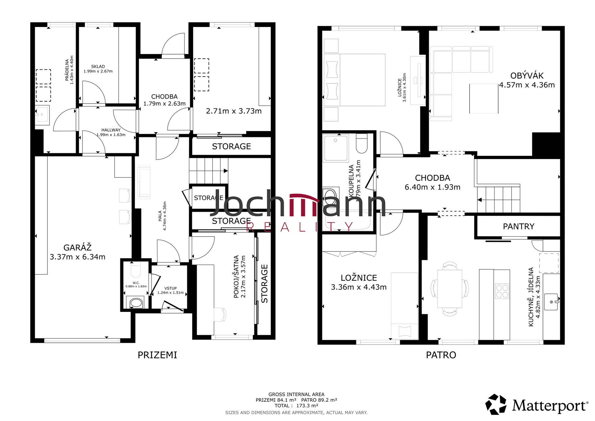 V přízemí domu se nachází prostorná garáž, technické zázemí včetně prádelny, samostatná toaleta a pokoj, který dnes slouží jako šatna, ale snadno jej využijete jako ložnici či pracovnu.
