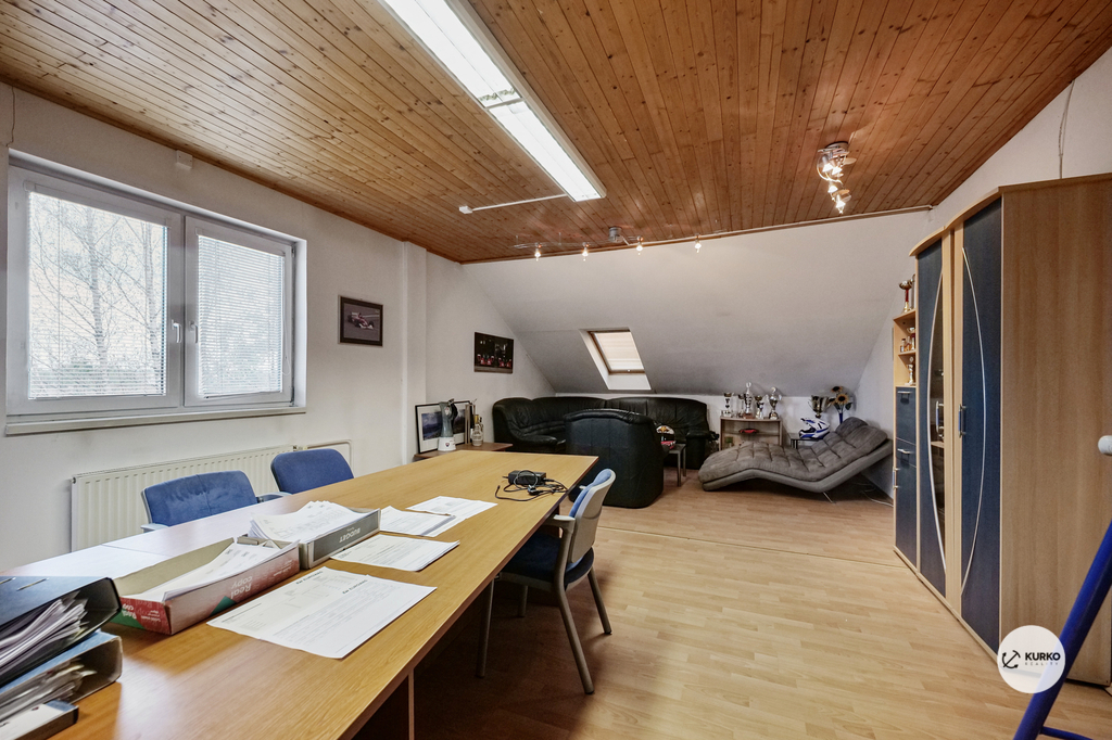 Součástí areálu je správní budova s kancelářemi a sociálním zázemím, vybavená dílna pro opravy automobilů, sklady, vrtátnice a budova určená k rekonstrukci, kde je možné vybudovat ubytovnu, byty správců a pod.