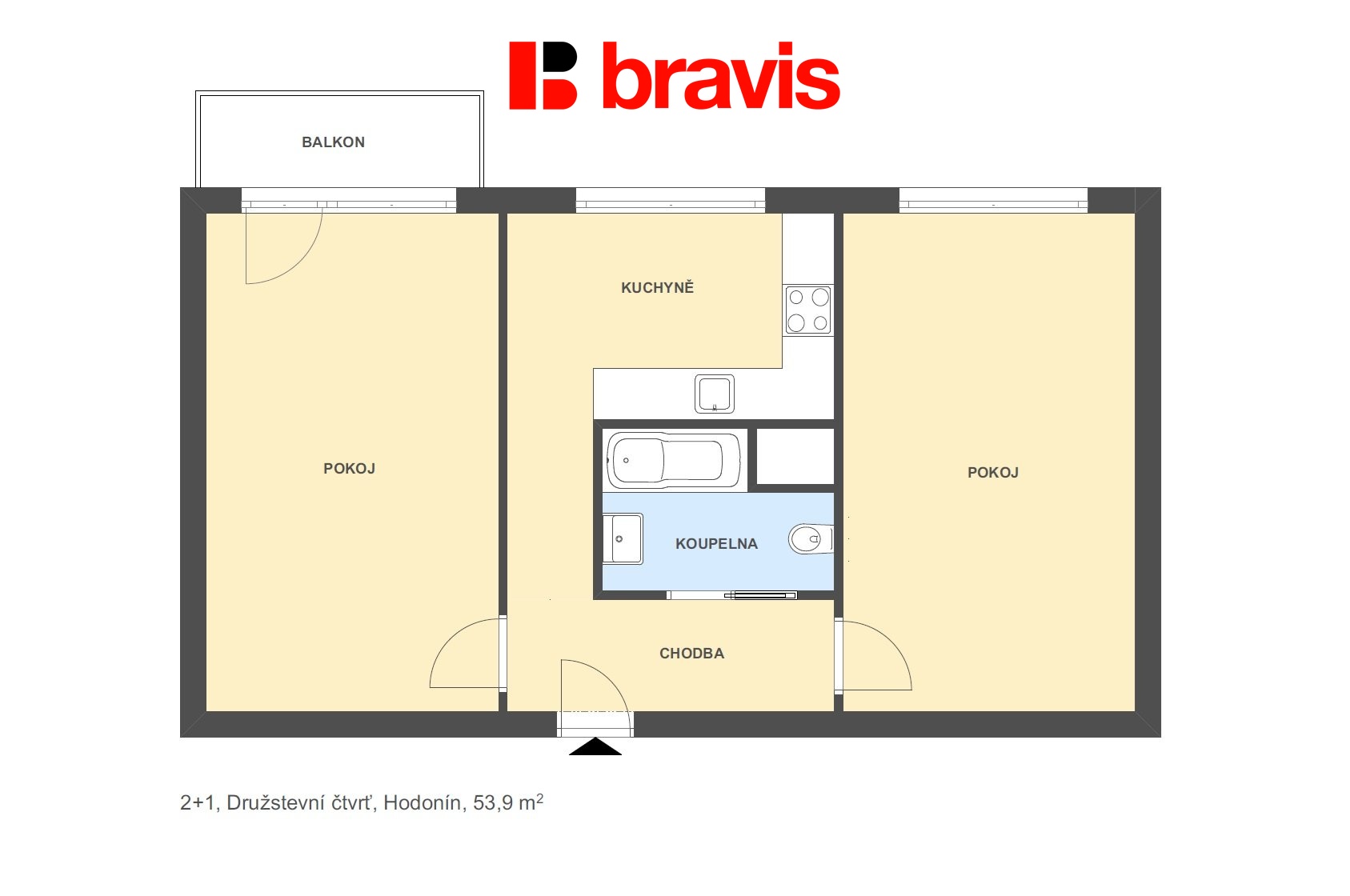 Bytová jednotka má celkovou výměru 54m² a je v původním stavu. K bytu náleží sklepní kóje.