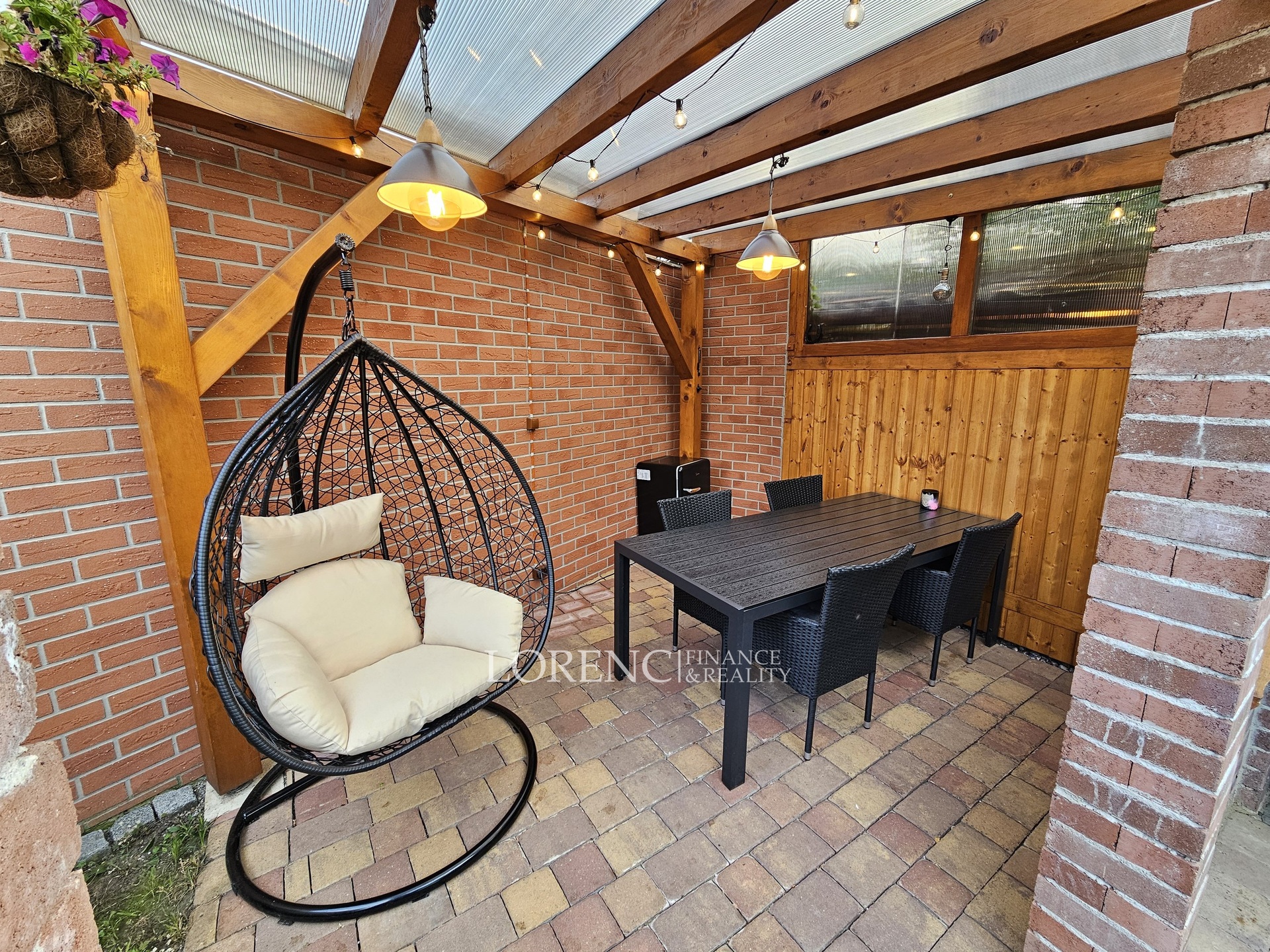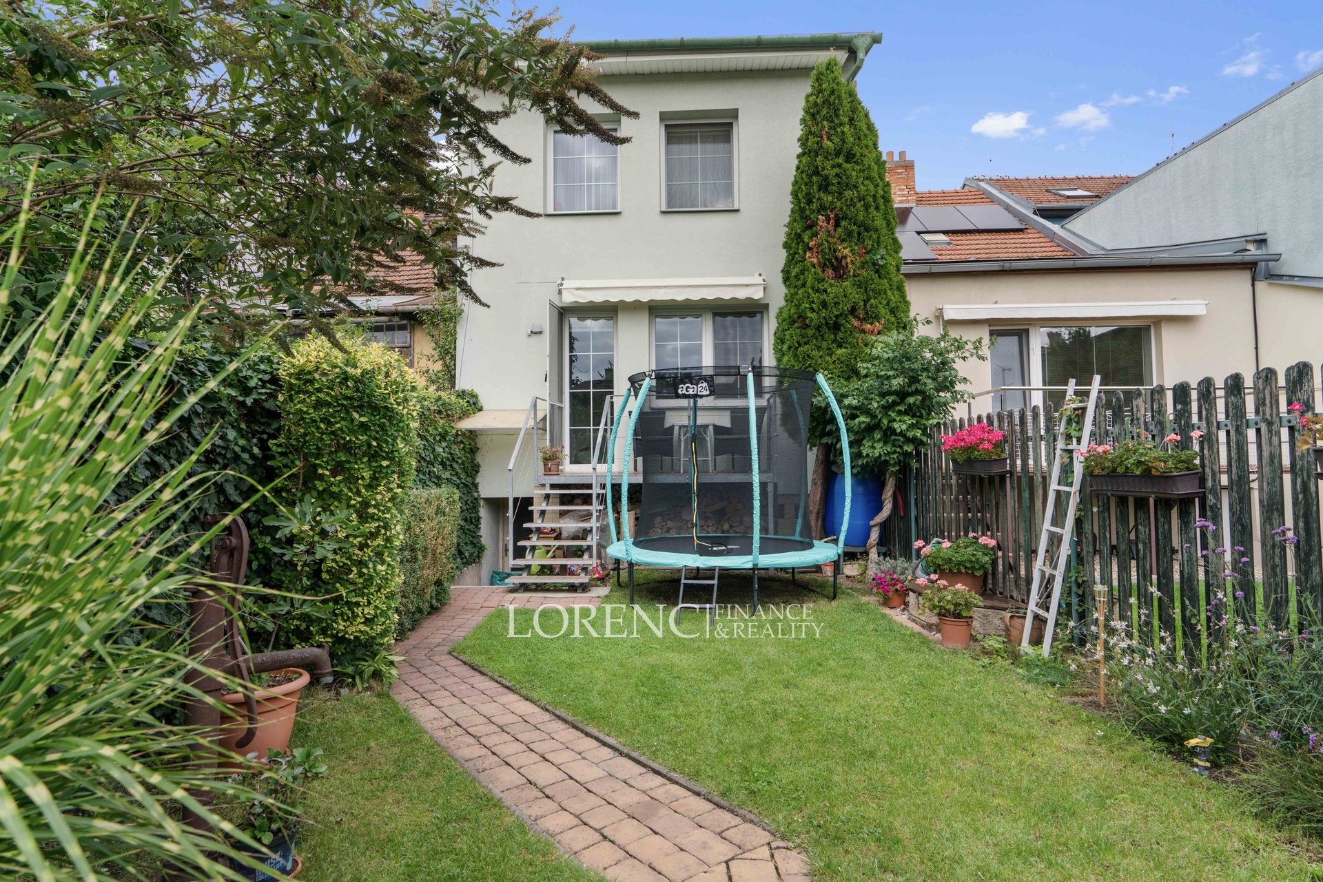Velkou výhodou jsou 2 koupelny (na každém patře jedna koupelna), komora a prostorný sklep přes 60 m² s přímým vstupem na dvůr. Na pozemku velikosti 171 m² se nachází příjemné posezení s pergolou.