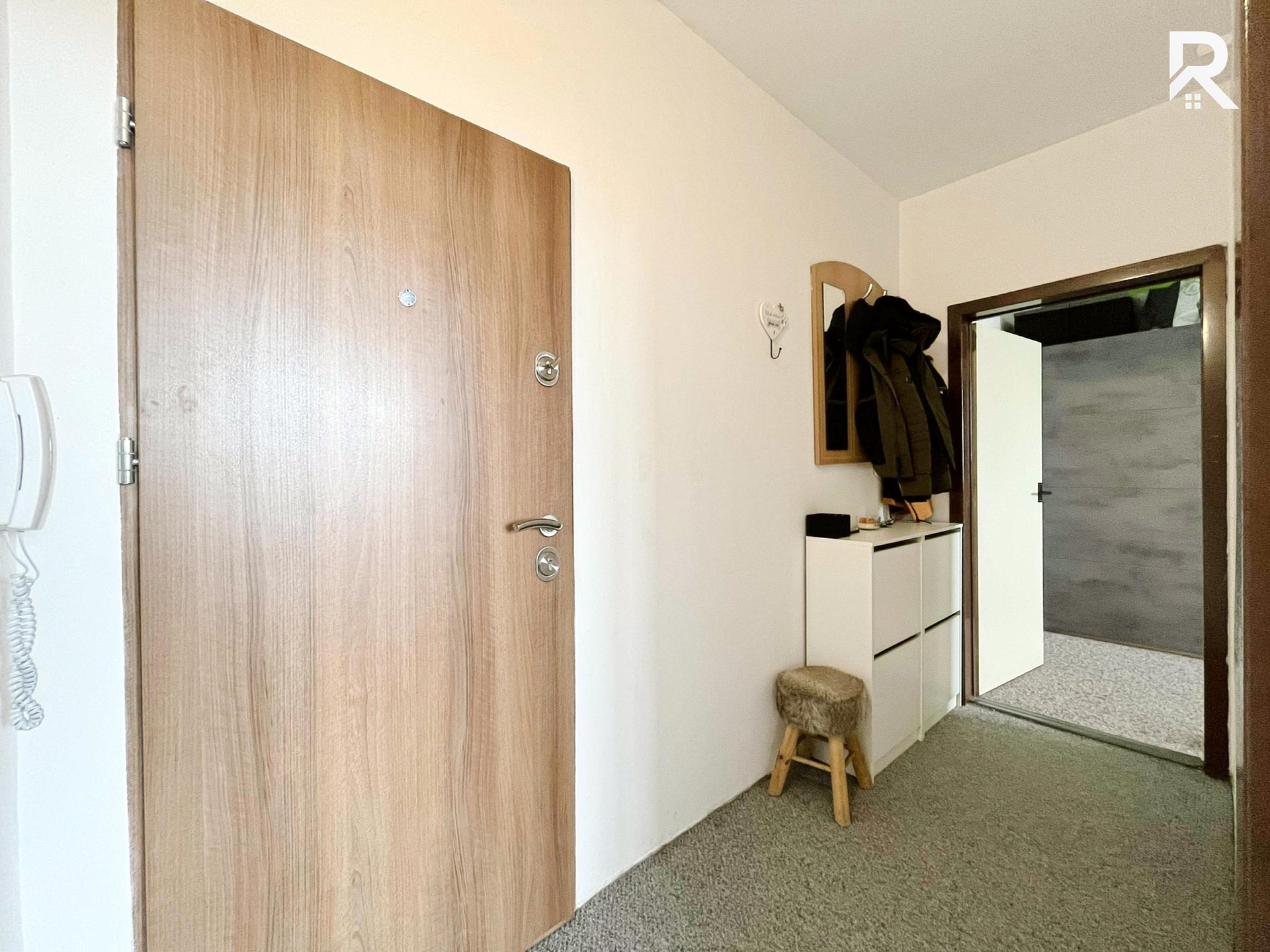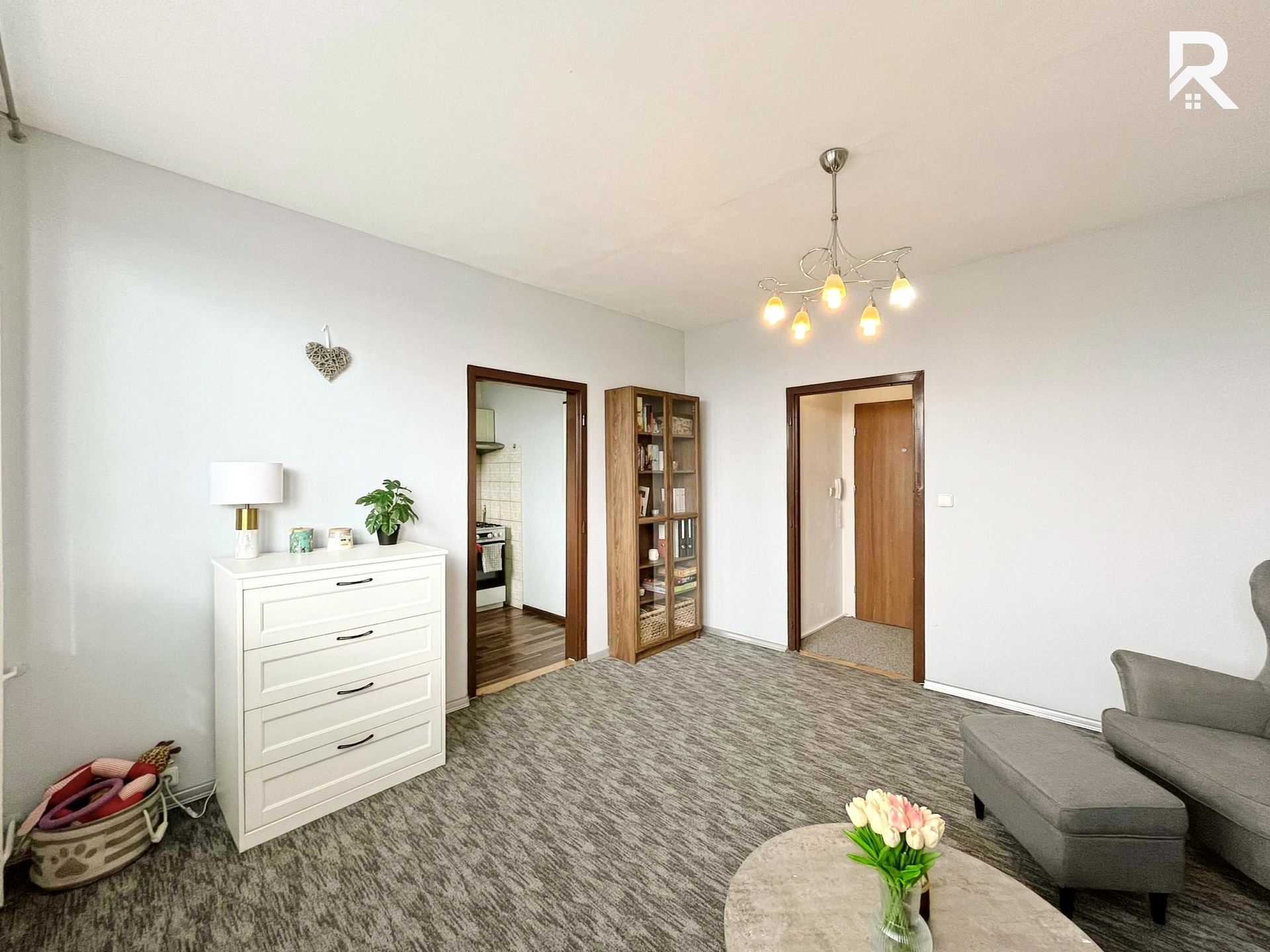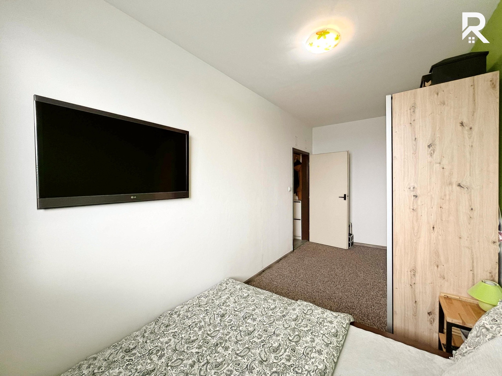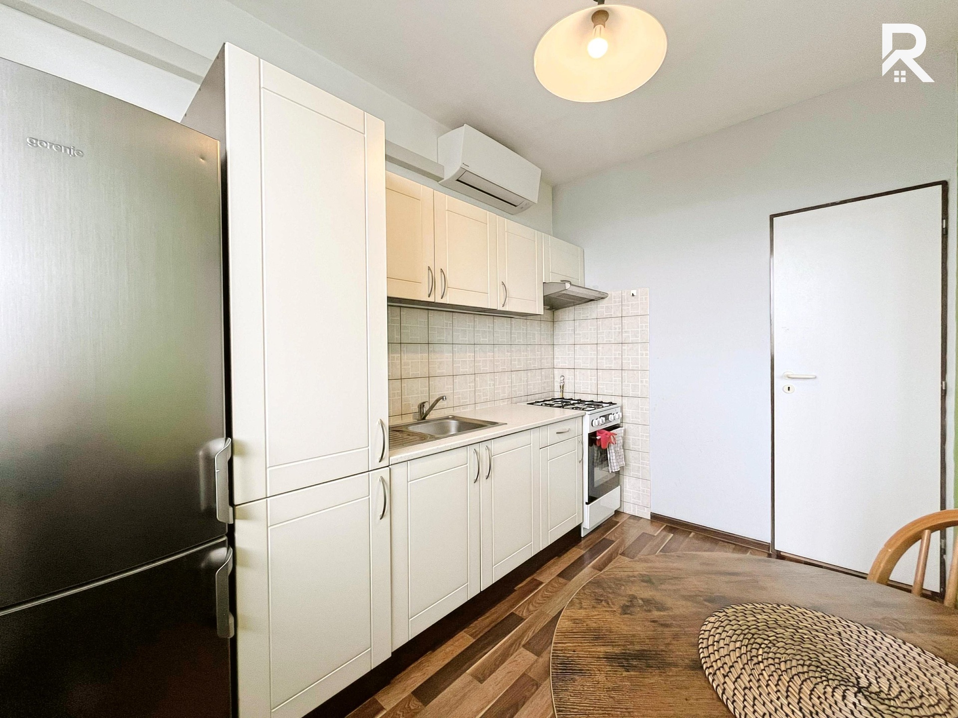 Hned po vstupu Vás přivítá prostorná předsíň, která Vás provede celým bytem. Dispozice je chytře řešená, takže první zastávkou je neprůchozí ložnice – dostatek místa na postel i klidné zázemí po náročném dni. Šatní skříň je součástí vybavení, takže o jednu starost méně. Dále se dostanete do obývacího pokoje, který nabízí prostor jak pro pohodlné posezení, tak pro menší jídelní kout nebo relax zónu s TV stěnou. Z obývací části se přechází do kuchyně, kde nechybí lednice s mrazákem a sporákem. V Bytě se také nachází klimatizace, která Vám pomůže udržet skutečně příjemné teploty i v horkých letních dnech.