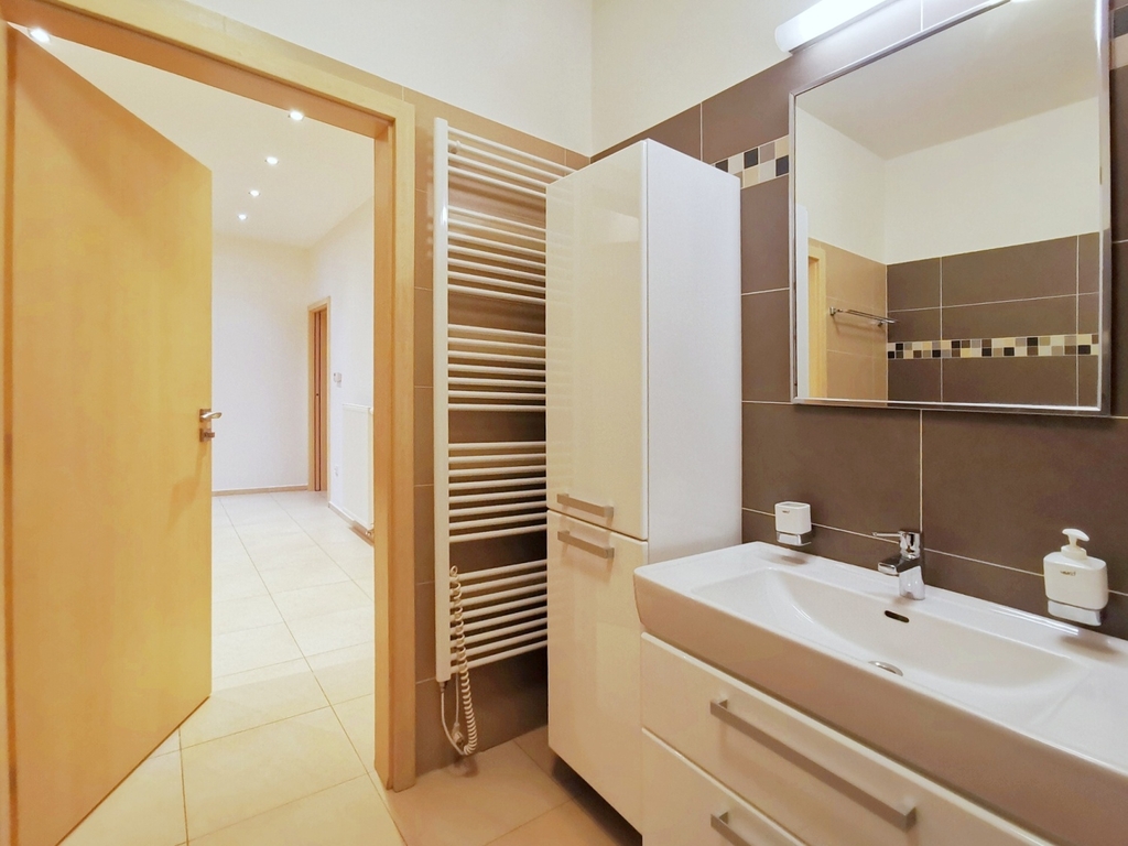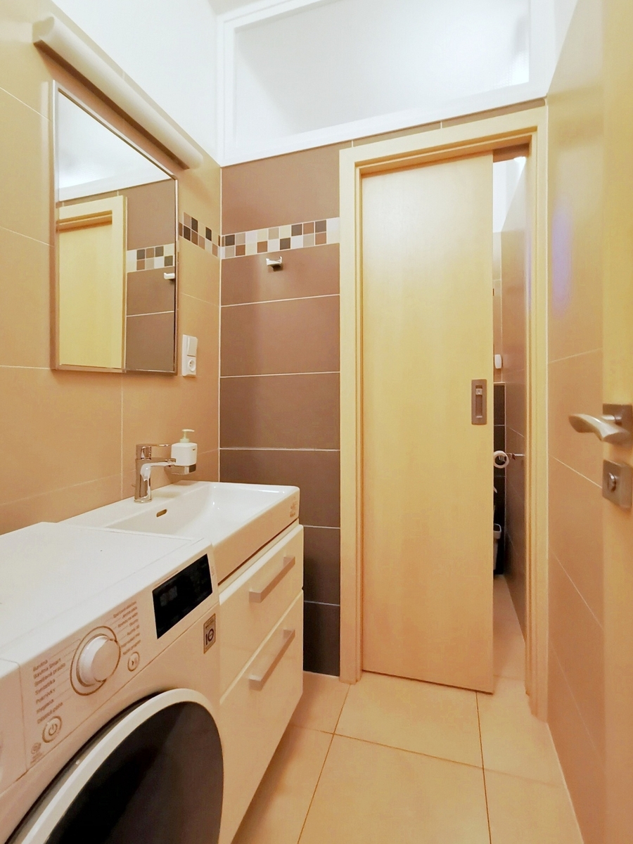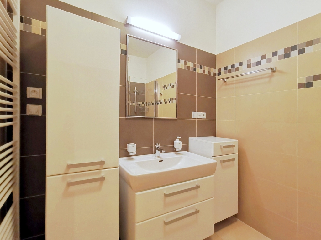 Součástí bytu je prostorná lodžie s příjemným výhledem do zahrady lázní a vlastní vytápění plynovým kotlem, které zajišťuje nízké provozní náklady. Dispozice se samostatnými vstupy do všech místností poskytuje maximální komfort a soukromí. Velkým benefitem je také garáž přímo v domě.