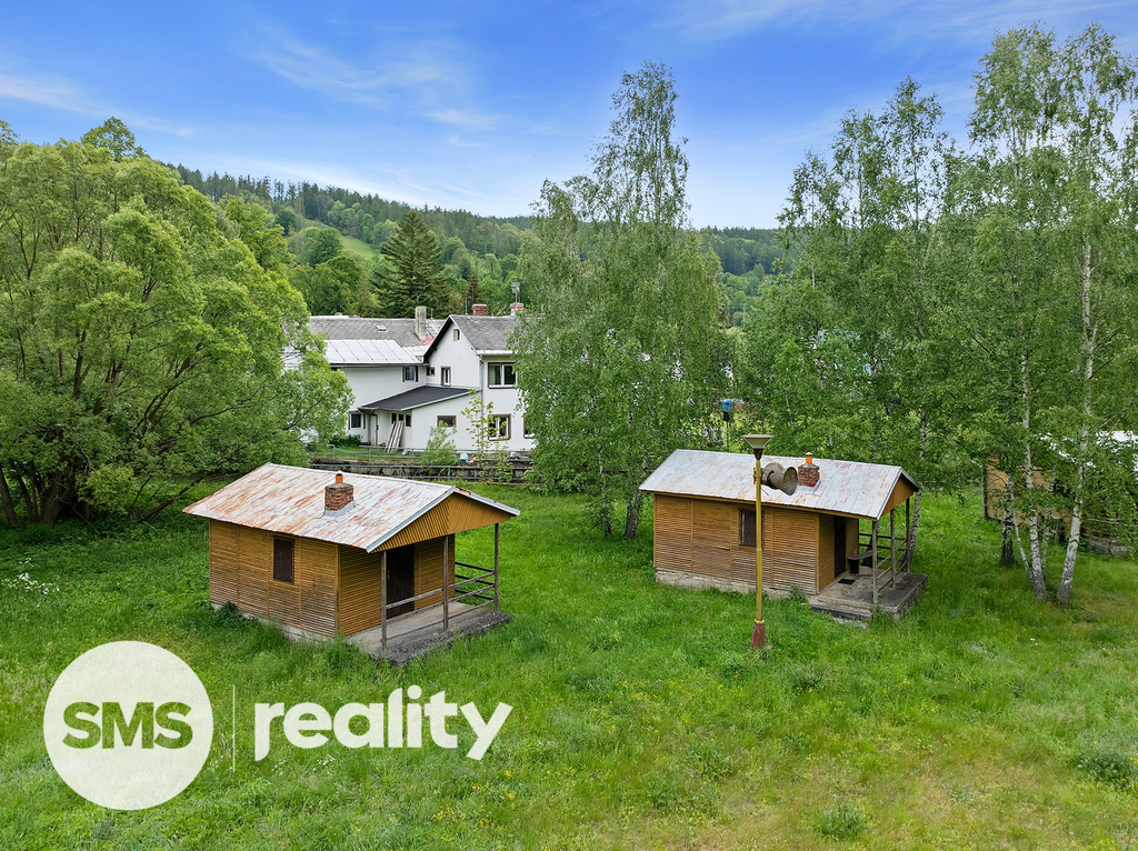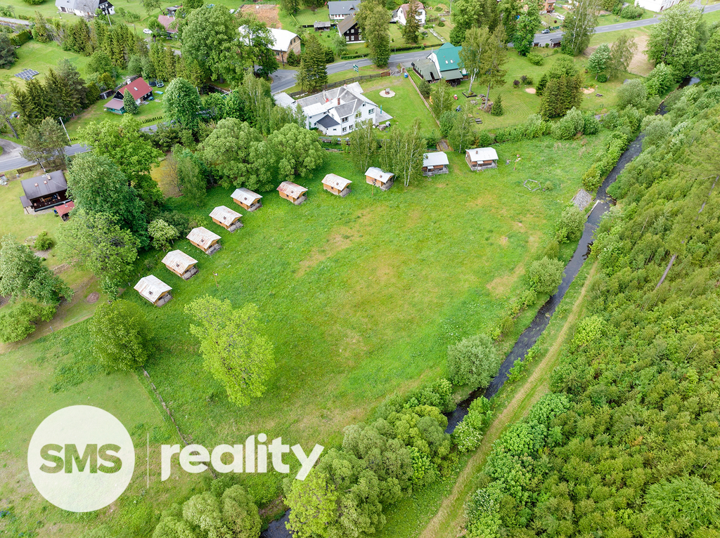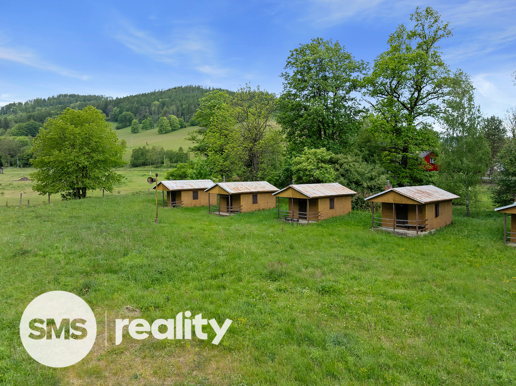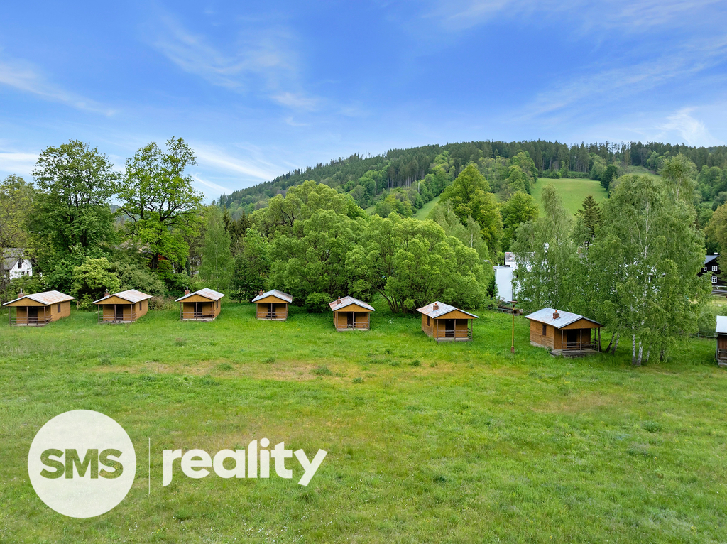 10 původních chatek – možnost renovace nebo výstavby nových ubytovacích jednotek (chatky jsou napojeny na elektřinu)